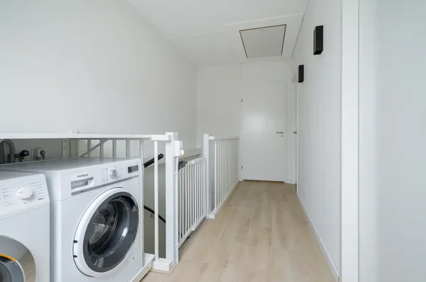 De begane grond beschikt over een woonkamer van 30 m² met een mooie eikenhouten vloer en gashaard. De open keuken is van alle gemakken voorzien met een kookeiland en hoogwaardige apparatuur. De achtertuin op het westen heeft een mooi terras en een berging met elektra.