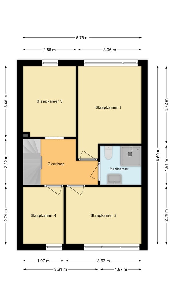 - De eindwoning heeft een woonoppervlakte van 122 m² en beschikt over 6 kamers, waarvan 5 slaapkamers;