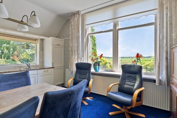 Deze vrijstaande woonboerderij vindt u op een ideale locatie voor de hobbymatige paardenhouder, vlakbij de grens van Friesland en Drenthe. Met een inhoud van circa 1.800 m³ en een woonoppervlakte van 262 m², beschikt deze woning over 7 kamers, waaronder 5 slaapkamers en een badkamer op de begane grond, wat het levensloopbestendig maakt. De ruime woonkamer van ongeveer 47 m² heeft een gashaard en pelletkachel. De woonkeuken is modern ingericht en de bijkeuken biedt ruimte voor wasapparatuur. Buiten ligt bijna 2 hectare eigen weiland, omzoomd door bomen, perfect voor paarden. De royale loods van 900 m² en eenvoudige schuur bieden mogelijkheden voor hobby en opslag. De tuin is netjes aangelegd en er zijn 20 zonnepanelen aanwezig. Oosterwolde, met zijn goede voorzieningen, ligt nabij en natuurgebieden zijn goed bereikbaar.