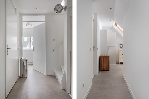 De ruime overloop biedt toegang tot een vierde slaapkamer en een grote opbergruimte in de zolder boven de garage. Op deze verdieping bevindt zich tevens de cv-ketel en toegang tot de vliering. Ook op deze verdieping is nauwgezette aandacht besteed aan een luxe en moderne afwerking, waardoor de gehele woning een uniforme en moderne stijl biedt.
