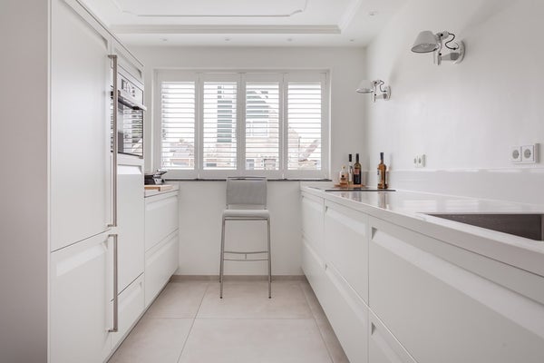 De gehele benedenverdieping is voorzien van een luxe tegelvloer met vloerverwarming, een verlaagd plafond en gestuukte wanden. Door het lichte kleurenschema in combinatie met de schuifpui aan de achterzijde voelt de woonkamer heerlijk licht aan en de moderne keuken is luxe uitgevoerd met meer dan genoeg stopcontacten en diverse soorten inbouwapparatuur zoals een inductiekookplaat met Downdraft-afzuiging, combi-oven, vaatwasser en een koel/vriescombinatie. De bijkeuken en de garage zijn binnendoor bereikbaar en bieden een zee aan opslagruimte met een inbouwkast en een perfecte mogelijkheid voor een wasmachine- en drogeropstelling.