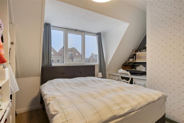 Boven vind je twee ruime slaapkamers met een fraaie laminaatvloer; één van deze kamers profiteert van een dakkapel, zodat je volop daglicht geniet en extra ruimte ervaart. Tevens heb je vanaf de overloop toegang tot de vliering. Ideaal voor het opbergen van bijvoorbeeld je koffers en seizoensspullen.