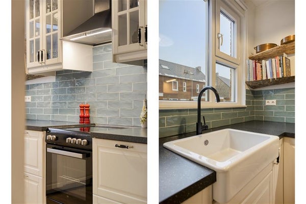 De keuken valt op door zijn landelijke afwerking en is ingericht in een praktische L-opstelling. Met een inductiekookplaat met oven, een losse koel-vriescombinatie en een vaatwasmachine sta jij binnen enkele minuten garant voor een heerlijke maaltijd – alles in een open en gezellige sfeer.