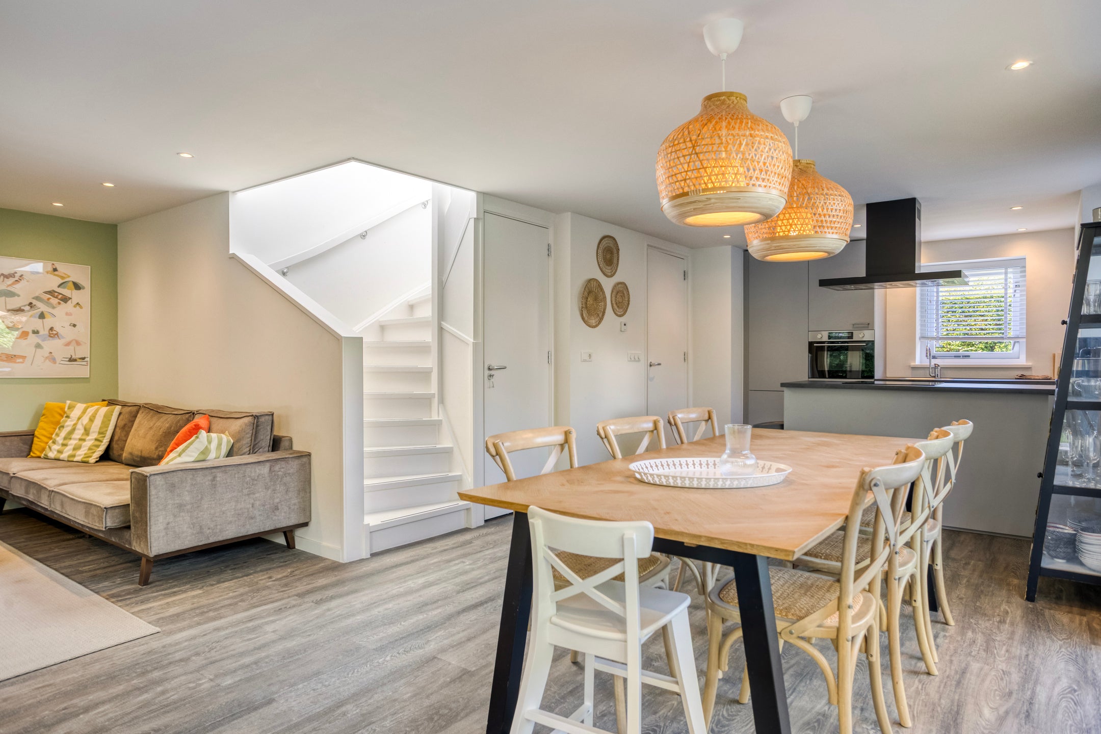 De indeling bestaat uit een entree met toegang tot een slaapkamer en het toilet. De open keuken met kookeiland leidt naar de woonkamer met openslaande deuren naar de zonnige tuin. Op de eerste verdieping zijn er twee slaapkamers en een badkamer met douche, toilet en dubbele wastafel. Het vakantiehuis is volledig vernieuwd in 2021, met parkeergelegenheid op eigen terrein. Een perfecte kans voor eigen gebruik of verhuur.