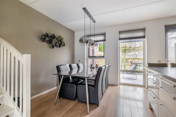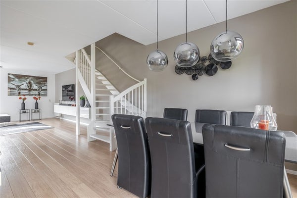 Via de entree met laminaatvloer en een fraaie stalen deur met glas betreedt u de woning. De L-vormige woonkamer van circa 42 m² is licht en ruim, met gestucte wanden, veel raampartijen, een open trap en airconditioning voor extra comfort. Hier geniet u van een vrij uitzicht over een vijverpartij. De open keuken sluit naadloos aan op de woonkamer en is uitgevoerd met een zeer nette inbouwkeuken voorzien van diverse apparatuur grotendeels vervangen in 2022, waaronder een inductiekookplaat, afzuigkap, vaatwasser, koeler, vriezer en combi-magnetron/oven.
