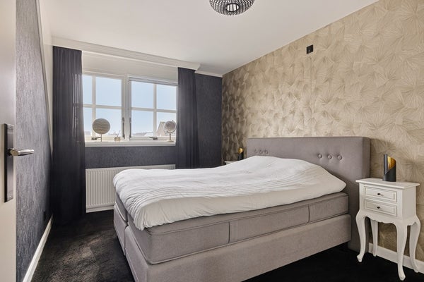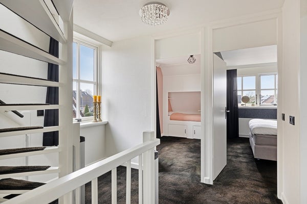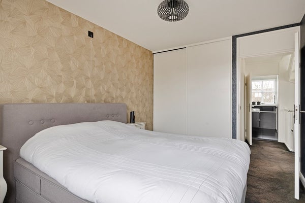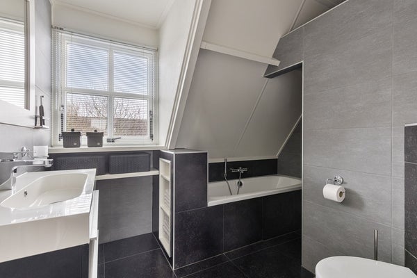 De overloop heeft een raam voor extra daglicht. Op deze verdieping zijn drie slaapkamers aanwezig. De eerste slaapkamer beschikt over een gezellige bedstee met kastruimte en een extra inbouwkast. De ruime hoofdslaapkamer is voorzien van een dakkapel en een inbouwkast. De derde slaapkamer heeft een vast bureau en een kast, perfect als kinder- of werkkamer. De badkamer is compleet en comfortabel ingericht met een ligbad, inloopdouche, wastafelmeubel, zwevend toilet en vloerverwarming. Zowel de badkamer als de slaapkamer aan de achterzijde zijn voorzien van een dakkapel, wat zorgt voor extra ruimte en licht.