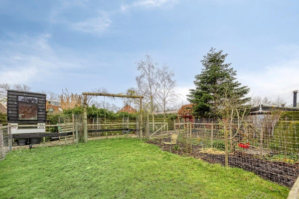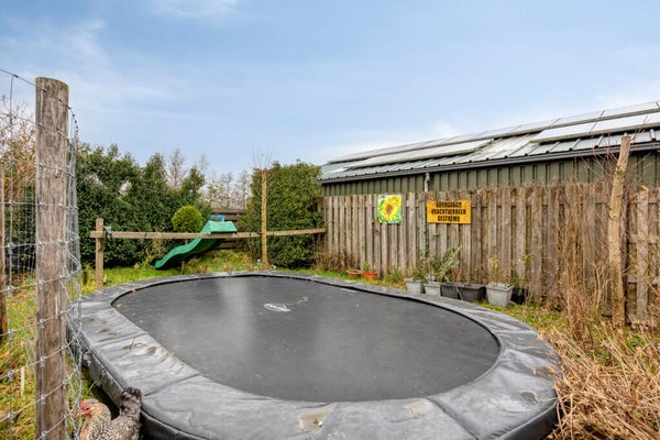 De grote achtertuin is een waar paradijs voor kinderen en huisdieren. De tuin biedt de mogelijkheid om je eigen groente, fruit, kruiden en bloemen te verbouwen en er zijn volop speeltoestellen, de browsing paddock, de veranda/stal (2024) en een vergroot tuinhuis met houtkachel voor extra comfort. Er is ook een overdekte houtopslag en een overdekte fietsenstalling, zodat je de tuin optimaal kunt benutten. Aan de voorzijde van de woning is er voldoende parkeergelegenheid voor twee auto's, en je hebt direct toegang tot het terras en de tuin.