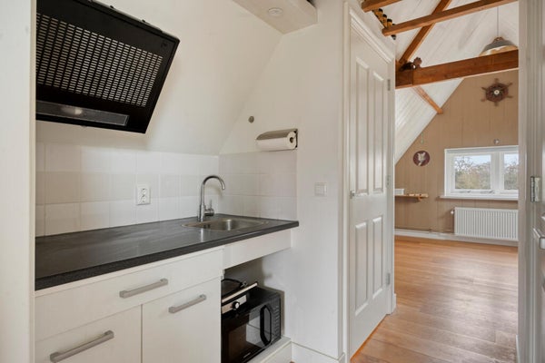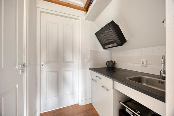 De begane grond van ‘t Zonne-Huys heeft een sfeervolle woonkamer die deze naam eer aan doet, want hier schijnt de zon de hele dag door. De functionele houtkachel(aansluiting) zorgt voor een warme, gezellige sfeer en met de recent aangebrachte schuimbeton isolatie en het vernieuwde eikenhouten vloer is het ook thermisch een aangename plek om te vertoeven.