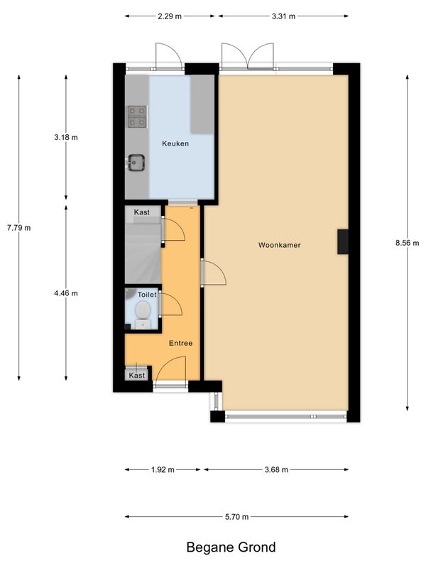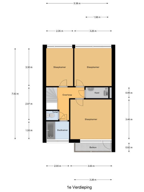 • De tussenwoning heeft een woonoppervlakte van 92 m² en beschikt over 4 kamers, waarvan 3 slaapkamers;
