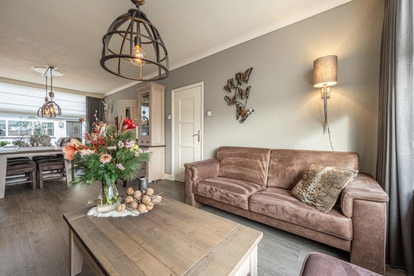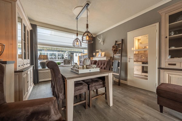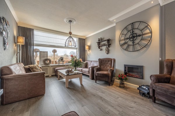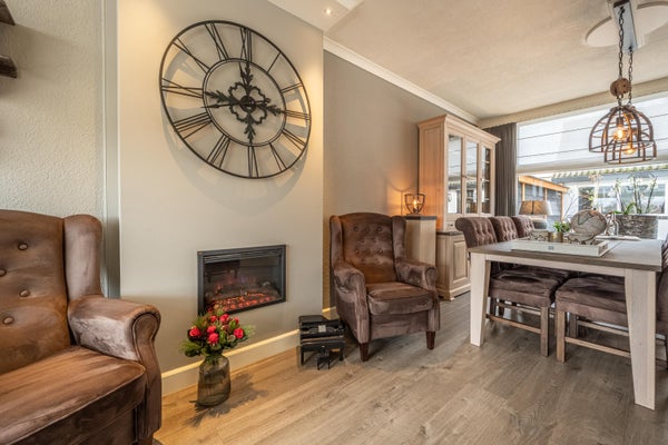 De ruime en lichte woonkamer is fraai afgewerkt en uitgerust met een elektrische inzethaard. De PVC-vloer draagt bij aan de warme uitstraling. De woonkamer biedt voldoende ruimte voor een comfortabele zit- en eethoek en is aan zowel de voor- als achterzijde voorzien van zonwering voor optimaal wooncomfort.
