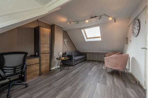 De ruime zolderkamer met dakraam en vrij uitzicht is ideaal te gebruiken als extra slaapkamer, werkkamer of hobbyruimte.