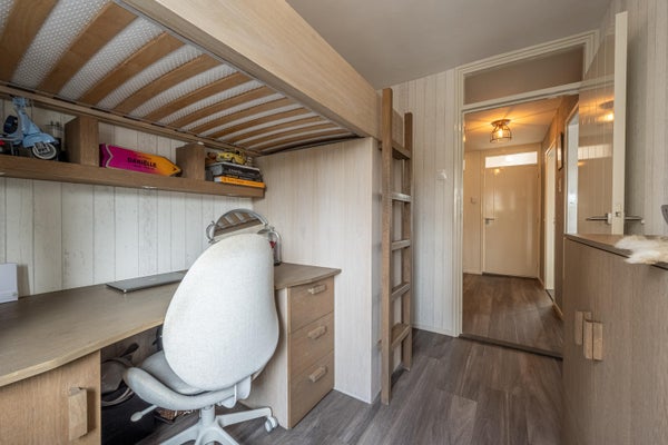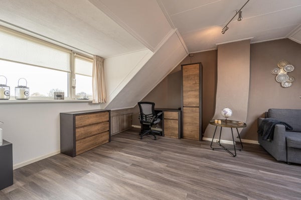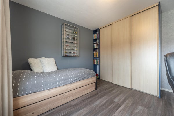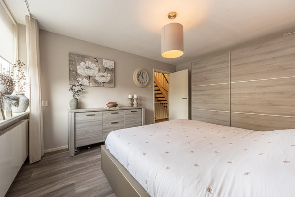 Tevens is de verdieping afgewerkt met dezelfde PVC-vloer als op de begane grond, wat zorgt voor een mooi en rustig geheel.