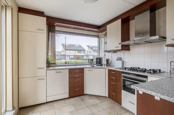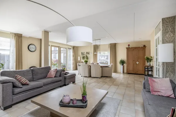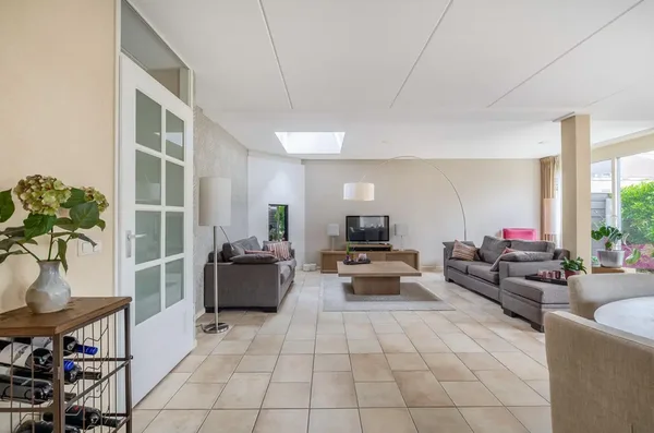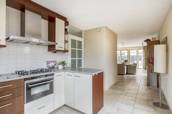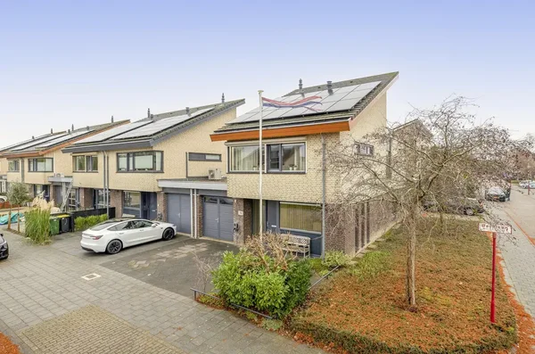 De entree leidt naar een riante living met veel daglicht door openslaande deuren. De open keuken is voorzien van moderne apparatuur. Op de eerste verdieping bevinden zich drie ruime slaapkamers, een badkamer met douche en ligbad, en een separaat toilet. De tweede verdieping heeft een slaapkamer met toegang tot een dakterras en ruimte voor wasmachine en droger. De verzorgde achtertuin biedt een groen gazon en een berging. Bouwjaar 2003, woonoppervlakte 181 m², perceel 234 m².