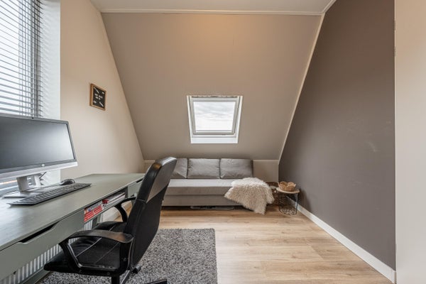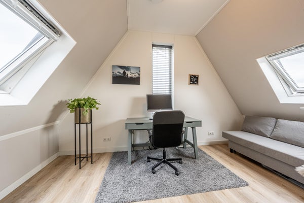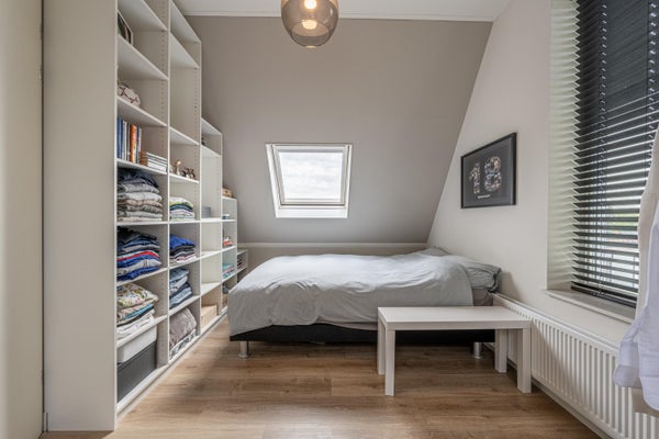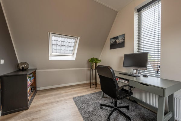 De overloop heeft een grote dakkapel met elektrisch zonnescreen en biedt extra ruimte, ideaal als werkplek of speelplek voor kinderen.