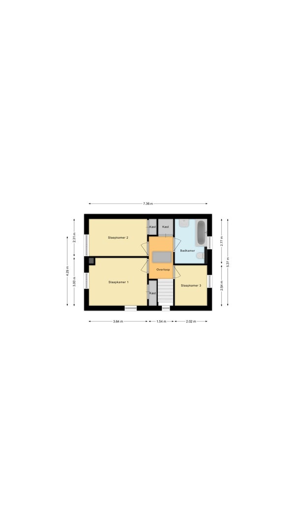 - De tussenwoning heeft een woonoppervlakte van 106 m² en beschikt over 4 kamers, waarvan 3 slaapkamers;