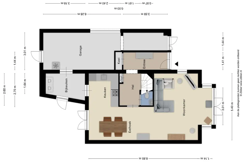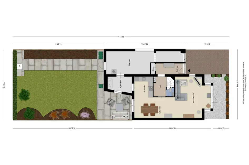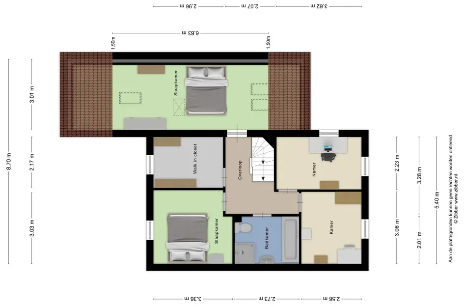 - De tussenwoning heeft een woonoppervlakte van 166 m² en beschikt over 7 kamers, waarvan 6 slaapkamers;