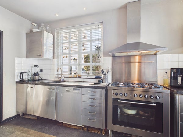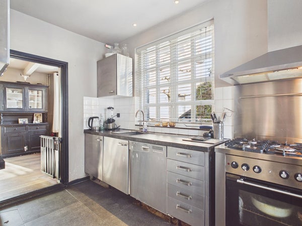 De halfopen keuken beschikt over een rechtopstelling en is voorzien van dubbel glas, vaatwasser, afzuigkap, 5-pits gaskomfoor, solitair fornuis, Belgisch handstenen werkblad en rvs kasten, Het plafond is voorzien van gips met spots en is gesausd. De wanden zijn voor 1/2 betegeld. De vloer is voorzien van beton, eiken houten vloer. Vanuit de keuken heeft u toegang tot de slaapkamers middels het portaal.