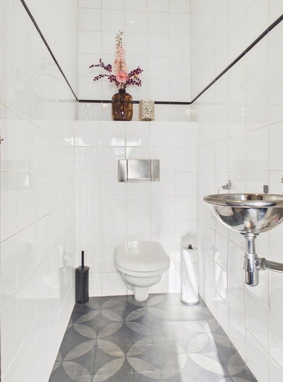 Het portaal beschikt over een toilet. Het toilet is voorzien van een fonteintje. Het plafond is voorzien van gips met spots en is gesausd. De wanden zijn geheel betegeld en de vloer is voorzien van beton, plavuizen. Het plafond van het portaal beschikt over gips en is gesausd. De wanden zijn gesausd en de vloer is voorzien van beton, eiken houten vloer.