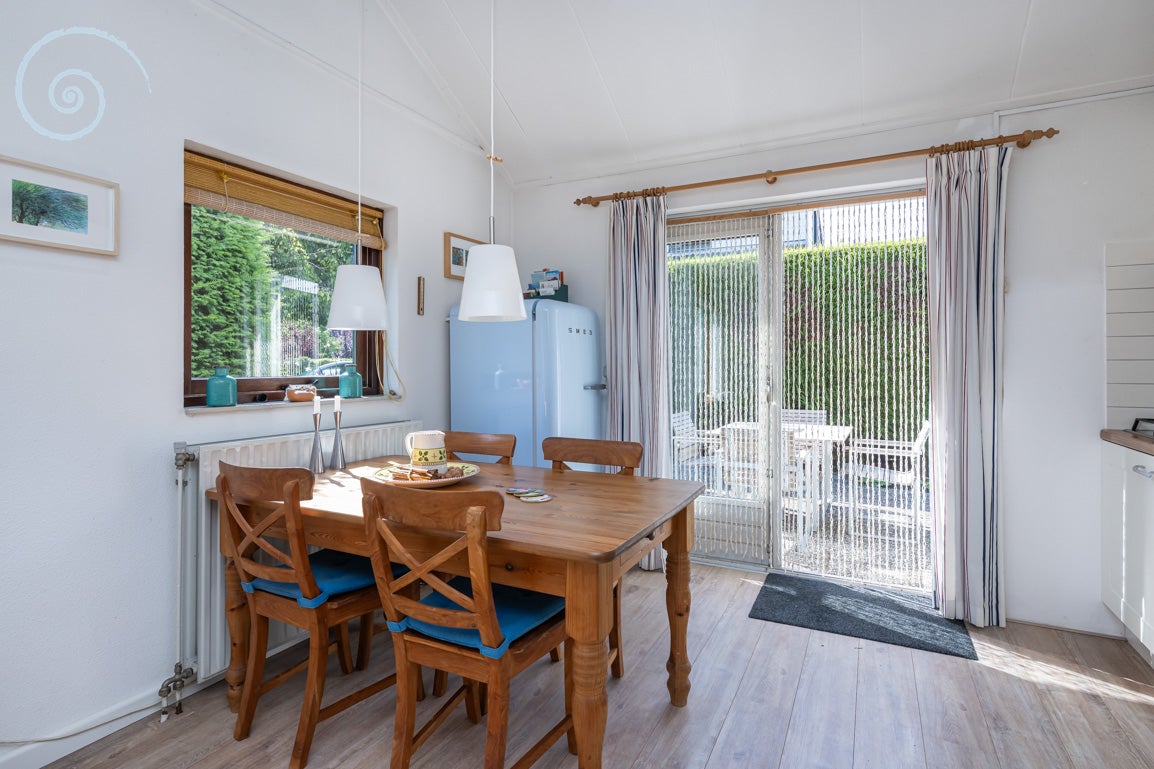 Deze vrijstaande recreatiewoning op het Noordzeepark ligt aan een rustig straatje omringd door groen en biedt optimale rust en privacy. Met een perceel van 476 m² eigen grond, is de woning zorgvuldig onderhouden door de huidige eigenaren. Op de begane grond vindt u een praktische badkamer, een ruime slaapkamer met directe tuin toegang, en een sfeervolle woonkamer met een open haard. De open keuken, verbonden met de tuin, is uitgerust met moderne apparatuur. De eerste verdieping herbergt twee slaapkamers en een separate toiletruimte. De tuin biedt diverse terrassen en een verzorgde grasveld, en er is parkeergelegenheid voor drie auto’s. Met het strand op korte afstand is dit de ideale plek voor ontspanning.