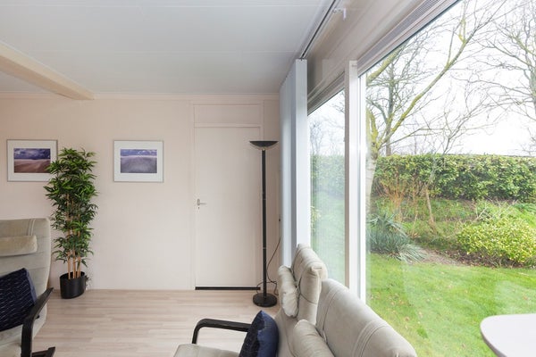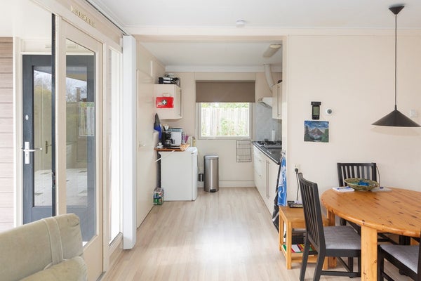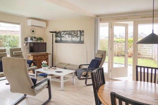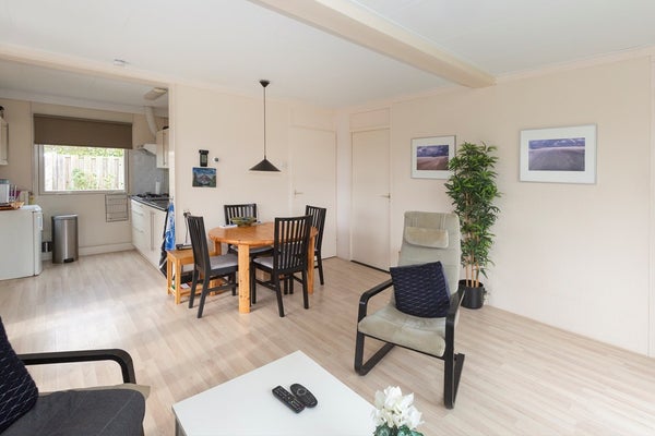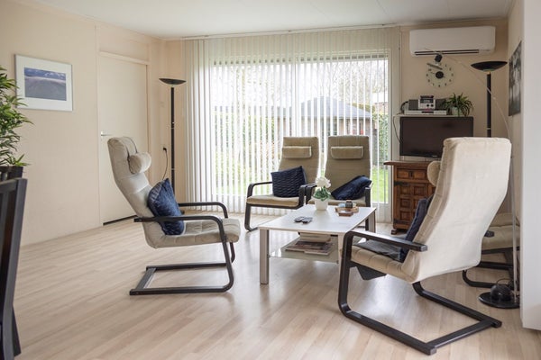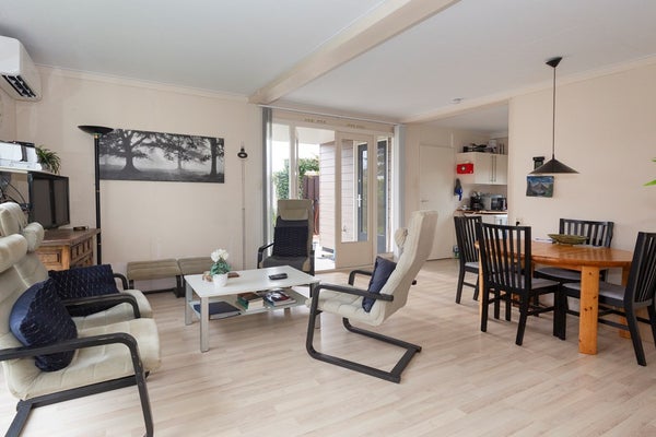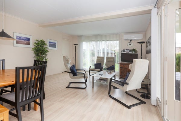 Bij binnenkomst in de woonkamer valt direct op dat er door de grote raampartijen - voorzien van dubbele beglazing - veel natuurlijk licht binnenkomt. De open keuken is voorzien van een gaskookplaat met afzuigkap, een losse koelkast en voldoende opbergruimte. Vanuit de woonkamer zijn de drie slaapkamers te bereiken. De aanwezige airconditioning koelt de woning in de zomer, maar zorgt ook voor een zeer behaaglijke temperatuur in de winter, waardoor het huis ook in de donkere maanden een fijn verblijf is!