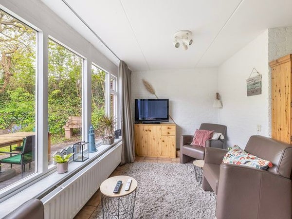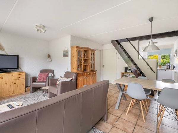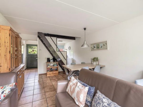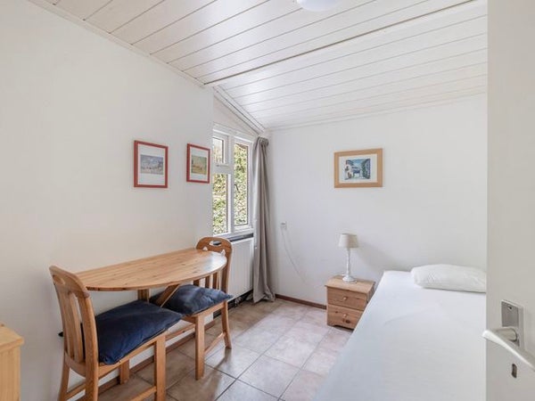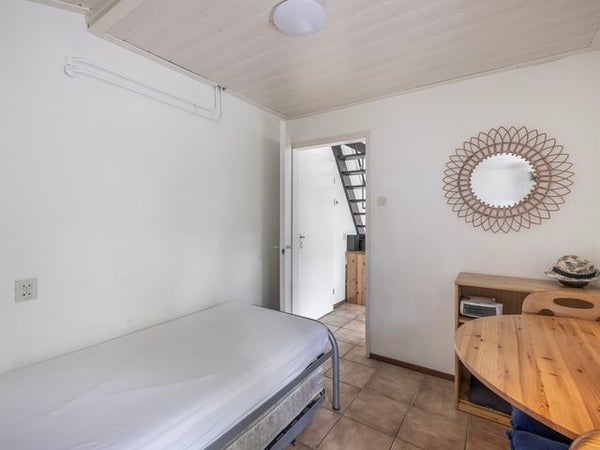 In het groene recreatiepark De Jonkerstee staat een knusse half vrijstaande recreatiewoning op 449 m² eigen grond. Dit charmevolle park, één van de oudere op Ouddorp, biedt ruimte, privacy en rust met veel groen en kronkelige wegen. De woning heeft een entreehal met toegang tot de badkamer en een lichte woonkamer met openslaande deuren naar de zonnige tuin. De keuken is uitgerust met een elektrische kookplaat en koelkast. Op de begane grond zijn een slaapkamer en badkamer. De 1e verdieping beschikt over twee ruime slaapkamers. Voor extra opslag is er een bergkast op de overloop. Buiten vindt u een stenen berging en een vrijstaande houten schuur. De omgeving nodigt uit tot wandelen en fietsen in de natuur. Een ideale plek om te recreëren.