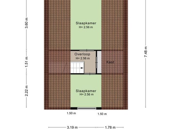 - De tussenwoning heeft een woonoppervlakte van 56 m² en beschikt over 4 kamers, waarvan 3 slaapkamers;