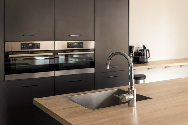 Bij binnenkomst komt u in een ruime hal die toegang biedt tot de living, het toilet, de technische ruimte (met warmtepomp en meterkast) en de trap naar boven. De lichte woonkamer is ingericht met een sfeervolle zithoek en heeft grote raampartijen die uitzicht bieden op het vlonderterras. Centraal in de living bevindt zich de robuuste keuken, uitgerust met een koel- vriescombinatie, vaatwasser en een groot kookeiland. Vanuit de living heeft u toegang tot de hoofdslaapkamer met aangrenzende badkamer. De gehele benedenverdieping is voorzien van vloerverwarming.