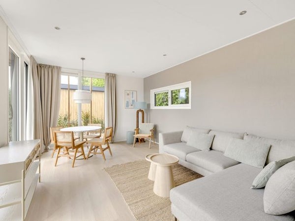Welkom op Recreatieoord Duynhof, een nieuw recreatiepark in Ouddorp aan Zee. Deze vrijstaande New Bay chalet op eigen grond maakt deel uit van een kleinschalig park met slechts acht recreatiewoningen. De chalet heeft een open en lichte leefruimte, met een royale woonkamer die via grote schuifpuien toegang biedt tot een houten terras. De moderne keuken is uitgerust met hoogwaardige inbouwapparatuur en biedt ruimte voor maaltijden met vrienden of familie. Er zijn twee slaapkamers, waarbij de master bedroom extra comfort biedt. De moderne badkamer heeft een inloopdouche en een wastafelmeubel. Het zonnige terras en de speelse tuin zorgen voor privacy, en parkeren is dichtbij mogelijk. Ouddorp biedt volop natuur, winkels en eetgelegenheden. Dit is jouw kans op een tweede thuis aan de Nederlandse kust.