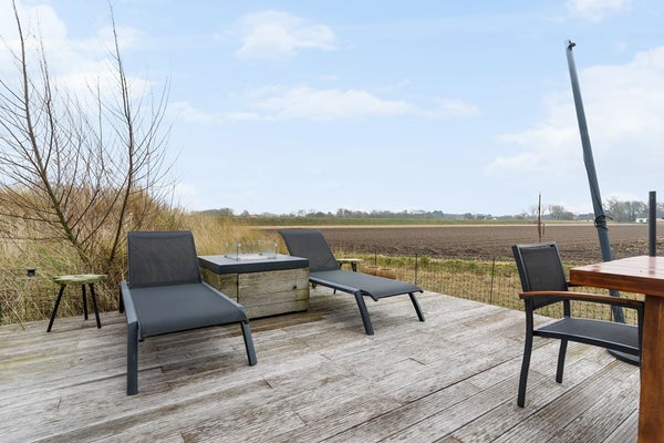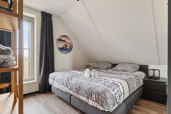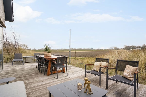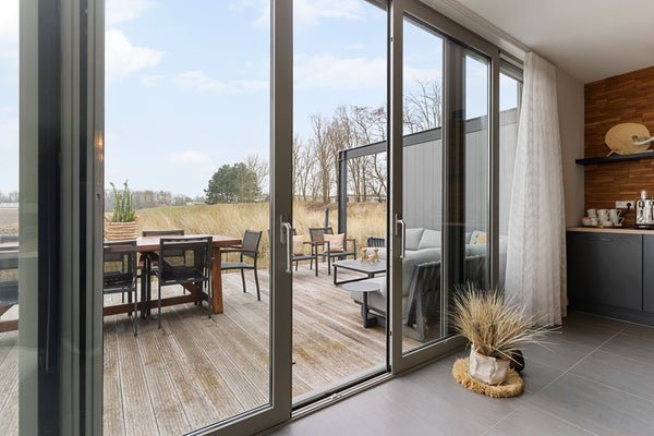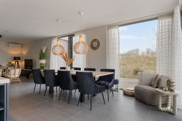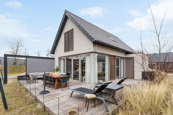 Vrijstaande, duurzame 8-persoons recreatiewoning met vrij uitzicht, luxe afwerking en vrij van verhuur, op loopafstand van het Noordzeestrand.