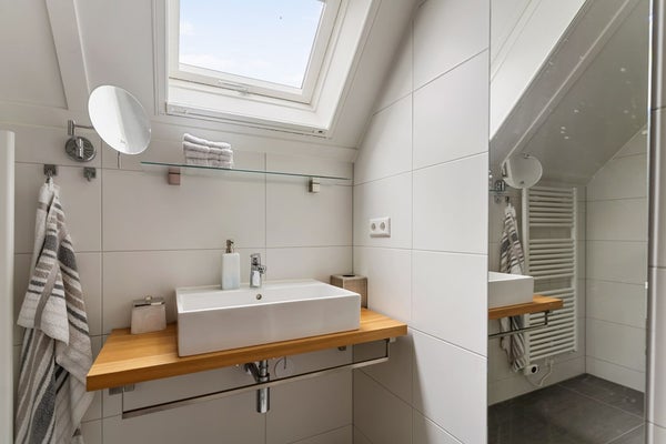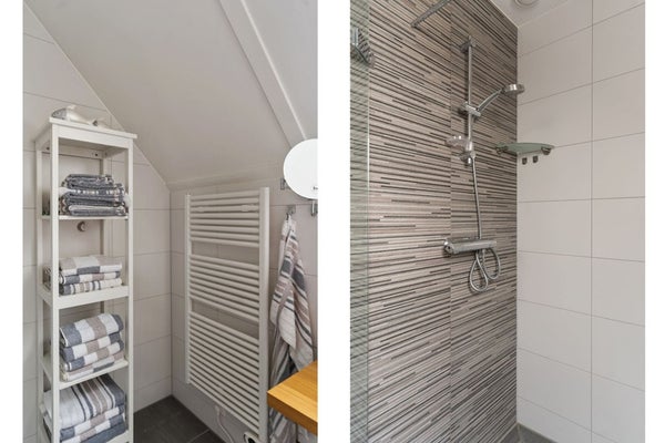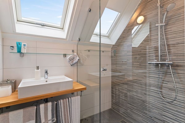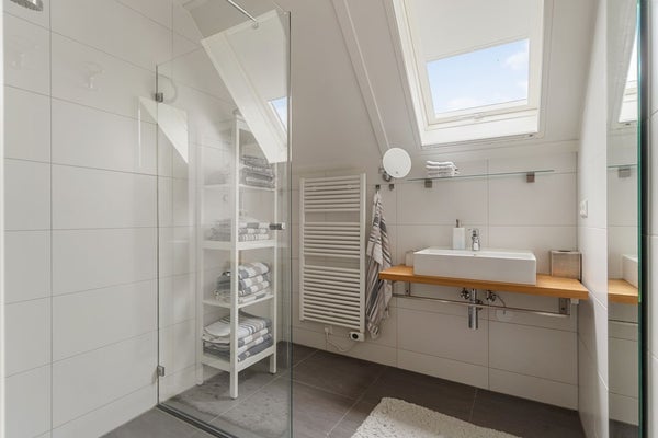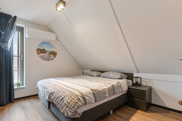 Op de verdieping bevinden zich vier royale slaapkamers en twee moderne badkamers. Wat deze woning echt bijzonder maakt, is dat alle slaapkamers zijn voorzien van een eigen airconditioner, uniek binnen het park en ideaal voor extra comfort in alle seizoenen. Beide badkamers zijn modern uitgevoerd en voorzien van een wastafelmeubel, wastafel en douche. Daarnaast is er een separate toiletruimte met hangend closet en fonteintje.