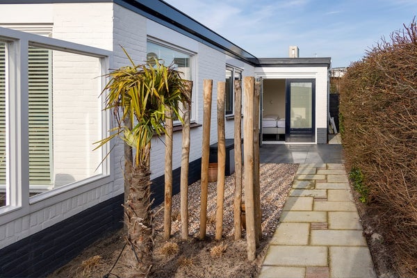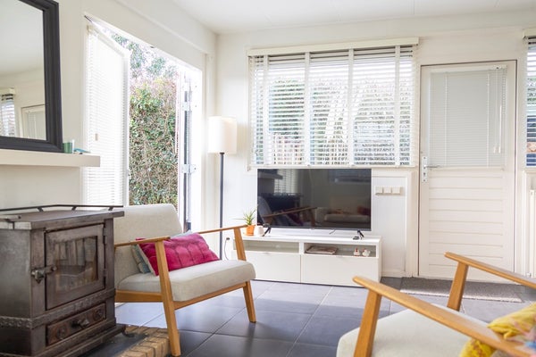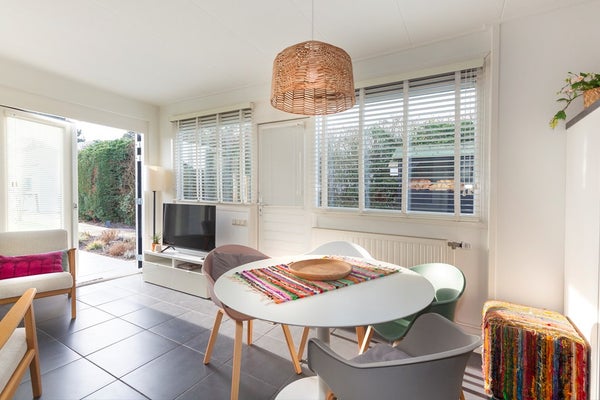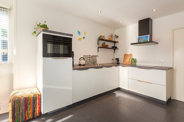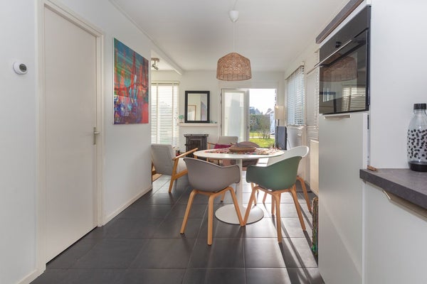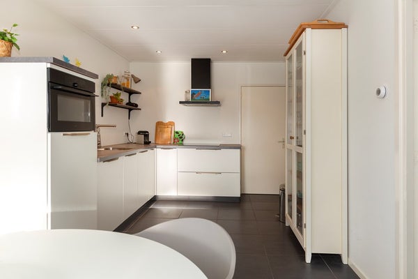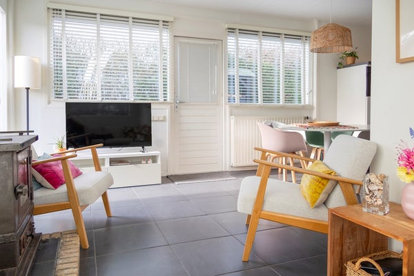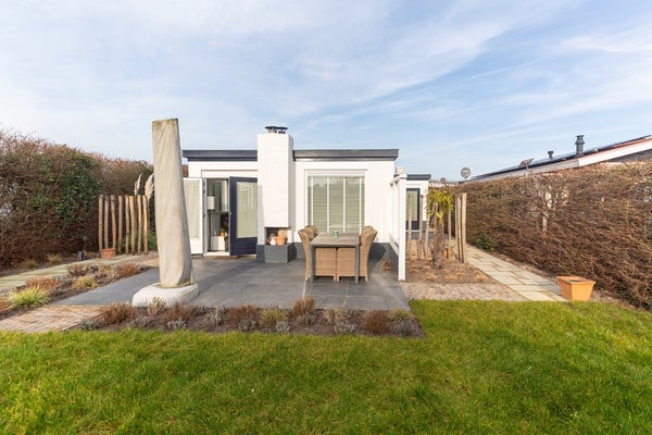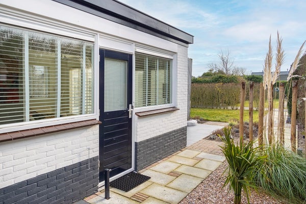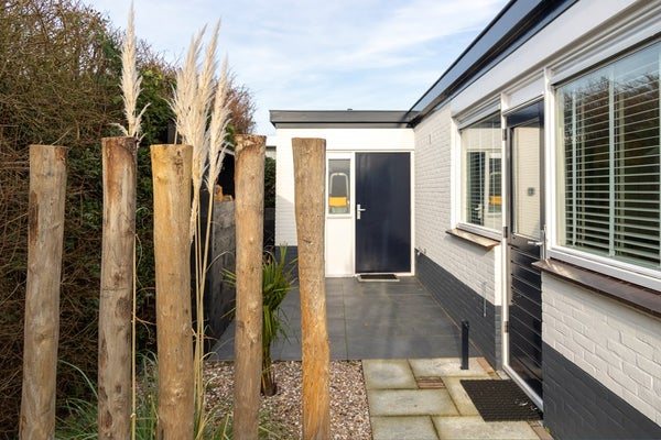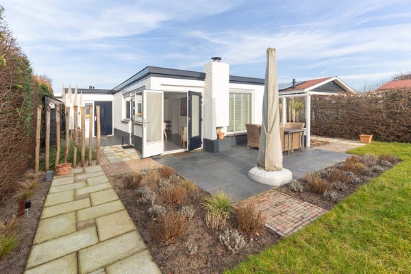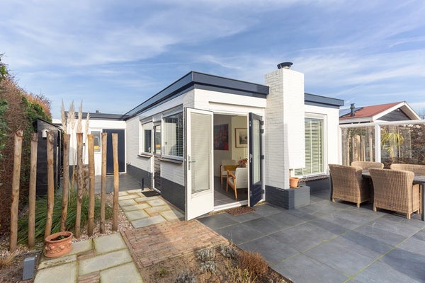 Via het tuinpad loopt u naar de toegangsdeur. Entree in de knusse woonkamer, waar de sfeervolle houtkachel ervoor zorgt dat het op koude en druilige dagen helemaal niet erg is om binnen te zitten. De grote ramen halen samen met de openslaande tuindeuren de zon in huis en zorgen voor een prettige lichtinval. De open keuken is voorzien van een L-vormige inbouwkeuken in witte kleurstelling met een zwart gemêleerd kunststof aanrechtblad. Deze moderne keuken uit 2024 is uitgerust met een koelkast, combimagnetron/oven, vaatwasmachine, spoelbak, inductiekookplaat en schouwafzuigkap. De 2 slaapkamers zijn met 12 en 9m2 prettig ruim en de grootste slaapkamer is voorzien van airconditioning en openslaande tuindeuren. De badkamer is in 2024 volledig vernieuwd en voorzien van een wastafelmeubel, wandcloset, een inloopdouche en handdoekenradiator. Tevens beschikt de badkamer over een mechanisch afzuigsysteem. De berging c.q. bijkeuken is zowel van binnenuit als van buitenaf te bereiken. Deze praktische ruimte is voorzien van een meterkast en een aansluiting voor de wasmachine, ook bevindt zich hier de cv-ketel (2024). De gehele bungalow is voorzien van een antracietkleurige plavuizenvloer.
