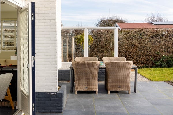 De bungalow staat op een perceel grond van 242m2, wat resulteert in een grote tuin voor én naast de woning, gelegen op het zuidoosten. Net als de bungalow is ook de buitenruimte keurig onderhouden en voorzien van een ruim terras, gazon en borders met beplanting.