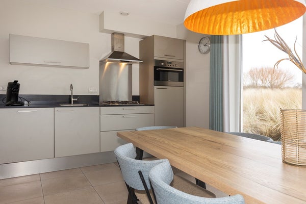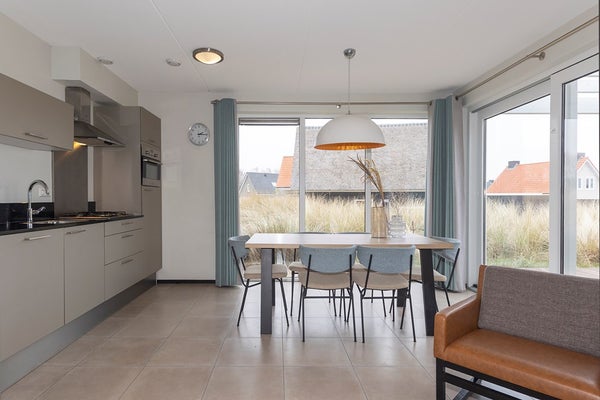 Via de duinpaden, op korte afstand van de receptie en voorzieningen, komt u bij de woning aan, waar u parkeergelegenheid heeft voor twee auto’s. Vervolgens komt u via het schelpenpad omhoog bij de villa. Entree, hal met de trapopgang, het toilet, toegang tot de hoofdslaapkamer op de begane grond met en-suite badkamer, en uiteindelijk de living. De living geniet veel lichtinval en is voorzien van een gezellige zithoek en een luxe open keuken met de nodige inbouwapparatuur, waardoor u van alle gemakken wordt voorzien. Denk hierbij aan een vaatwasser, koelkast, combioven en een gaskookplaat met afzuigkap. Via de schuifpui heeft u direct toegang tot het zonneterras.