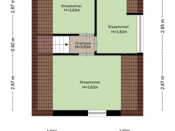 - De tussenwoning heeft een woonoppervlakte van 63 m² en beschikt over 4 kamers, waarvan 3 slaapkamers;