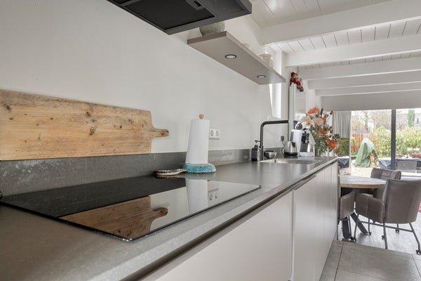 De gehele woning is maximaal uitgebouwd voorzien van nieuwe vloeren, vloerverwarming, leidingwerk, keuken, badkamer, tuin en overkapping.