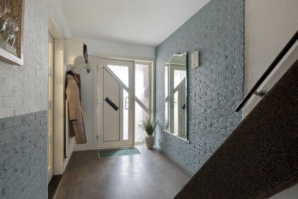 Entree met hal, meterkast (vernieuwd in 2024), trapopgang en toegang tot de royale inpandige garage. Aan de achterzijde bevindt zich een grote multifunctionele kamer, ideaal als werkruimte, hobbyruimte, slaapkamer of praktijk aan huis.