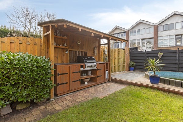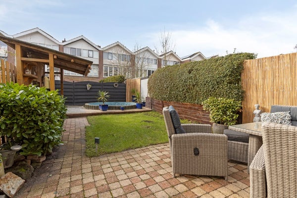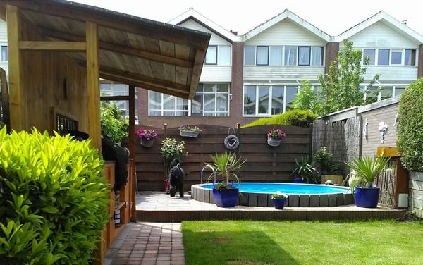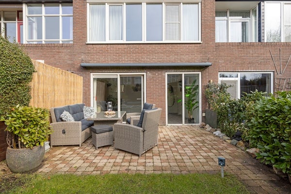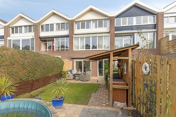 De woning beschikt over meerdere buitenruimtes. De achtertuin is gunstig gelegen op het zuidwesten en biedt volop zon. Hier vind je een prettig terras en een zwembad(vernieuwd 2025) een buitenkeuken, een heerlijke plek om te ontspannen en te genieten van lange zomerdagen.