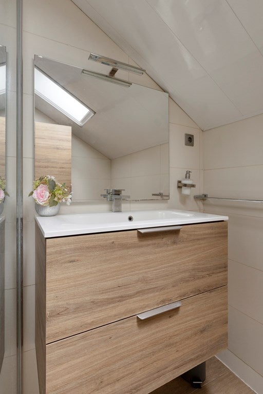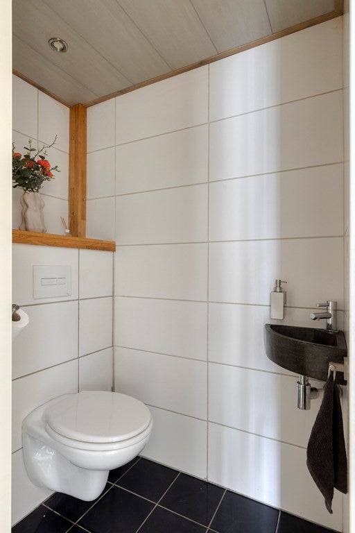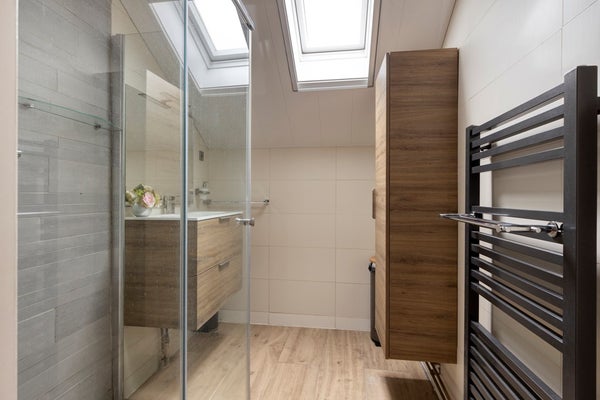 Overloop met toegang tot drie slaapkamers en de badkamer (2016). De slaapkamers zijn goed van formaat en praktisch in te delen. De badkamer beschikt over een douche en wastafelmeubel. Op de overloop bevindt zich tevens een separaat toilet.