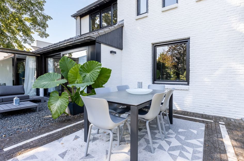 Deze volledig gemoderniseerde villa in Oudenbosch biedt luxe en ruimte, met een royale tuin die veel privacy biedt. Bij binnenkomst in de hal word je verwelkomd door een visgraat PVC-vloer, glas-in-looddeuren en een stijlvolle trap. De open indeling leidt naar een ruime zitkamer met een haard en een lichte serre, ideaal voor ontspanning. De moderne keuken is een eyecatcher, uitgerust met hoogwaardige Siemens-apparatuur en een groot kookeiland. Op de eerste verdieping zijn drie ruime slaapkamers, waarvan de master met een walk-in closet. De luxe badkamer biedt een dubbele wastafel en een jacuzzi. De tuin, met diverse terrassen en beplanting, en het multifunctionele bijgebouw maken deze villa compleet. Met een goede ligging en voorzieningen in de buurt, is dit de perfecte plek om comfortabel te wonen.