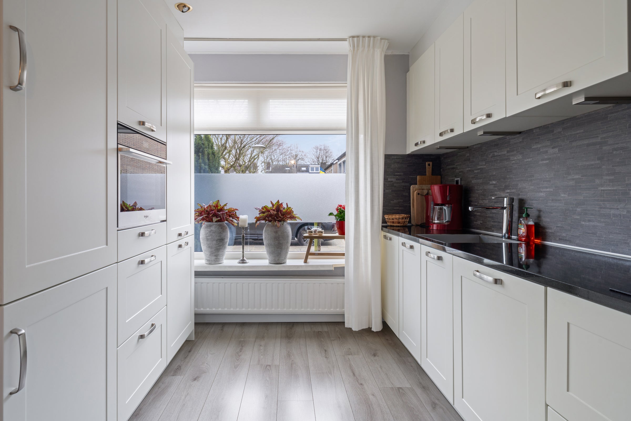 Deze keurige tussenwoning met vrijstaande stenen berging is gelegen aan een rustige straat in Oudenbosch, in een kindvriendelijke woonwijk. De woning, met vijf kamers en een woonoppervlakte van 111 m² op een perceel van 120 m², is gebouwd in 1976 en recentelijk vernieuwd met een moderne keuken en luxe badkamer, waardoor het direct instapklaar is. De ruime woonkamer heeft openslaande deuren naar de zonnige tuin op het westen. Op de eerste verdieping bevinden zich drie volwaardige slaapkamers en een praktische badkamer. De tweede verdieping is toegankelijk via een vaste trap en beschikt over een vierde slaapkamer en stookruimte. De woning is voorzien van kunststof kozijnen en isolatie, en is eenvoudig bereikbaar binnen 35 minuten van Rotterdam en Antwerpen.