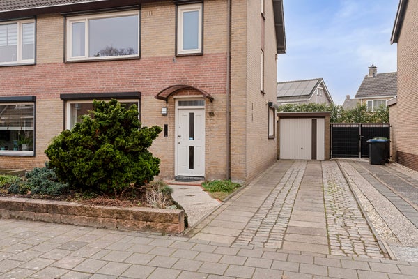 Deze twee-onder-een-kapwoning met garage en zonnige tuin ligt aan een rustige straat in de woonwijk Kom Noord, dichtbij het dorpscentrum. Basisschool, winkels en openbaar vervoer zijn op loopafstand, en het buitengebied begint om de hoek. Het huis heeft een woonoppervlakte van 106 m² en beschikt over 4 kamers, waaronder 3 slaapkamers en 2 badkamers. De lichte woonkamer en nette keuken met moderne apparatuur zijn op de begane grond te vinden, evenals de hal en een toilet. De eerste verdieping biedt een ouderslaapkamer en een ruime slaapkamer die nu als badkamer functioneert. De tweede verdieping bevat een slaapkamer met een dakvenster. De tuin aan de achterzijde is mooi aangelegd en op het westen gericht, terwijl de garage is uitgerust met elektra en verwarming. Dit huis is een fijne plek om te wonen.