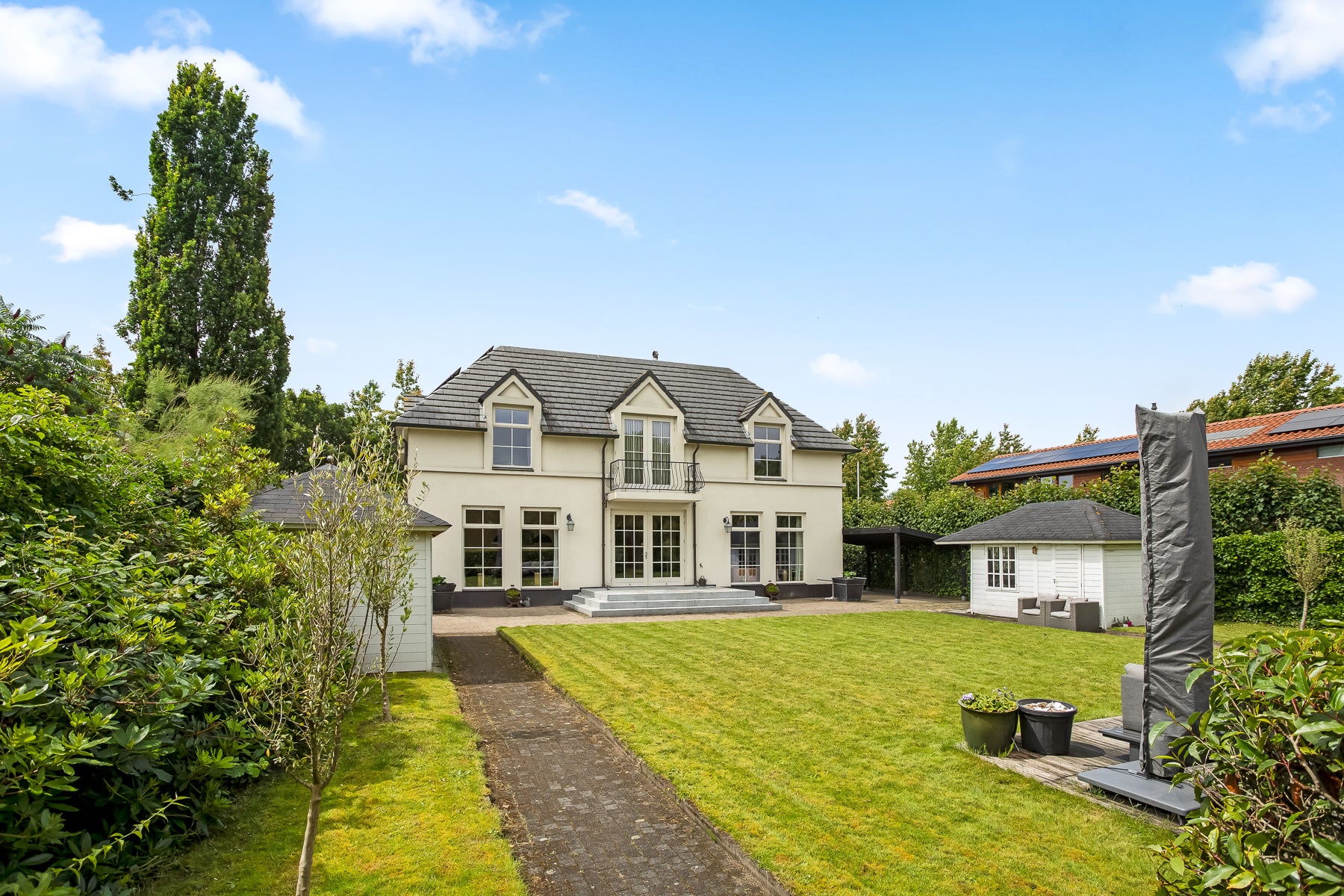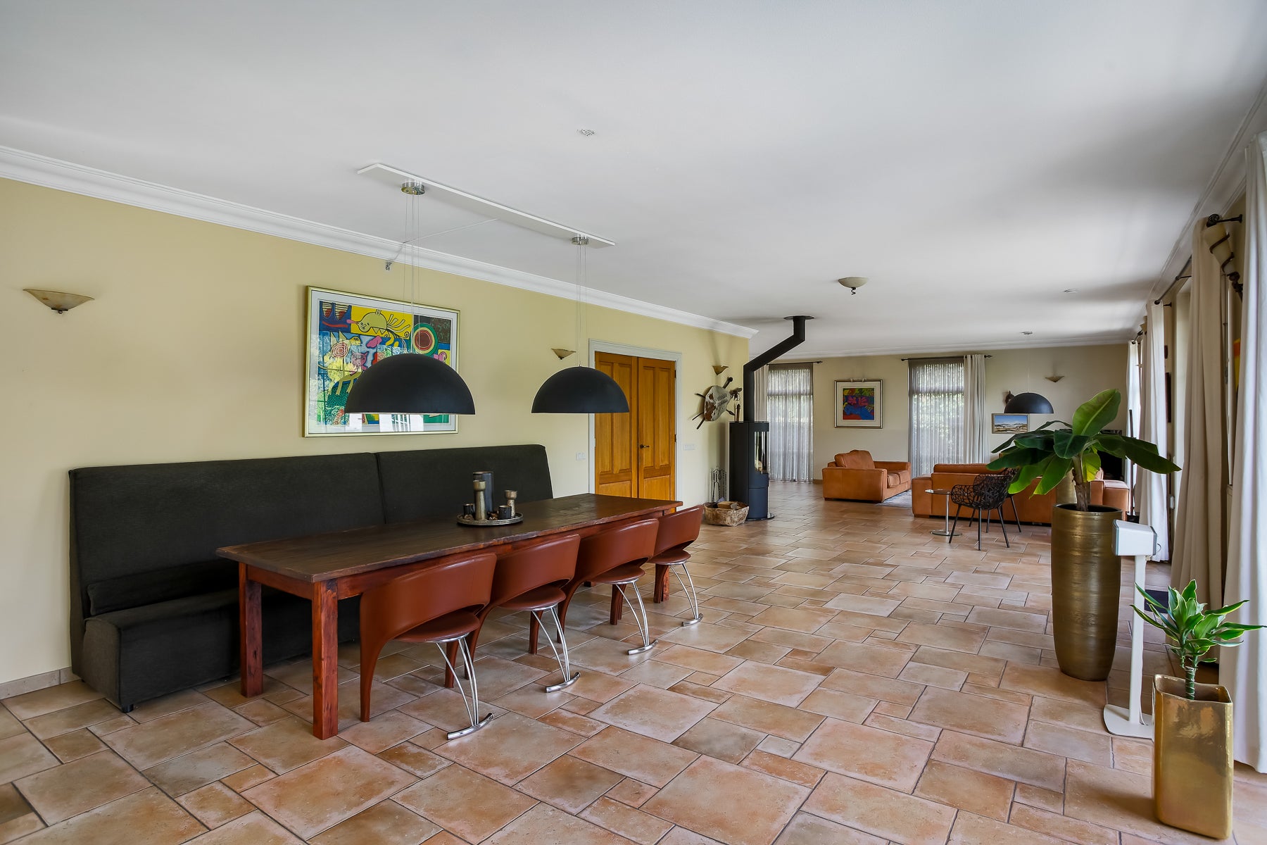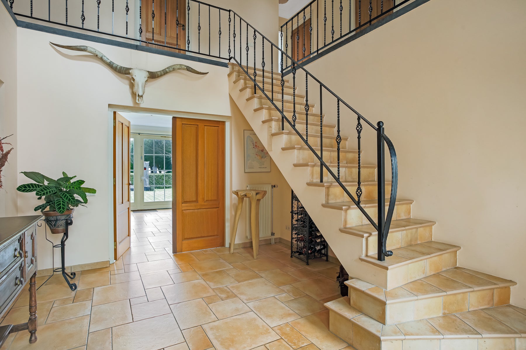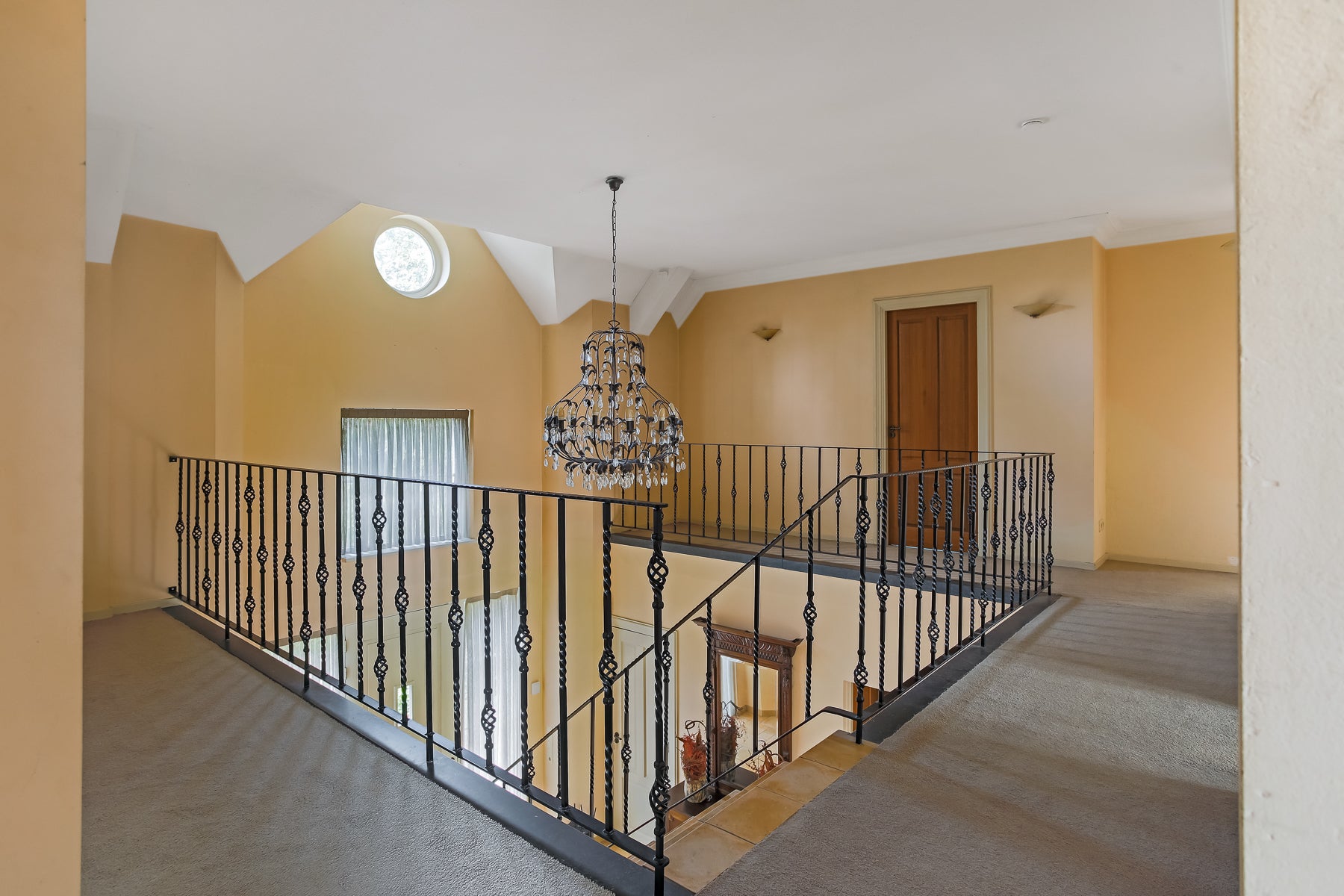 De imposante hal met vide leidt naar de lichte L-vormige woonkamer, waar openslaande deuren toegang geven tot de tuin. De halfopen keuken met Italiaans design sluit aan op het eetgedeelte, ideaal voor diners met familie en vrienden. Op de verdieping bevinden zich de master bedroom met balkon en vier andere ruime slaapkamers. Twee badkamers zijn beschikbaar, één met een ligbad en de ander met een douche. Buiten geniet je van een grote tuin met terrassen en privacy. Deze woning, gebouwd in 2002, is ideaal voor een groot gezin.