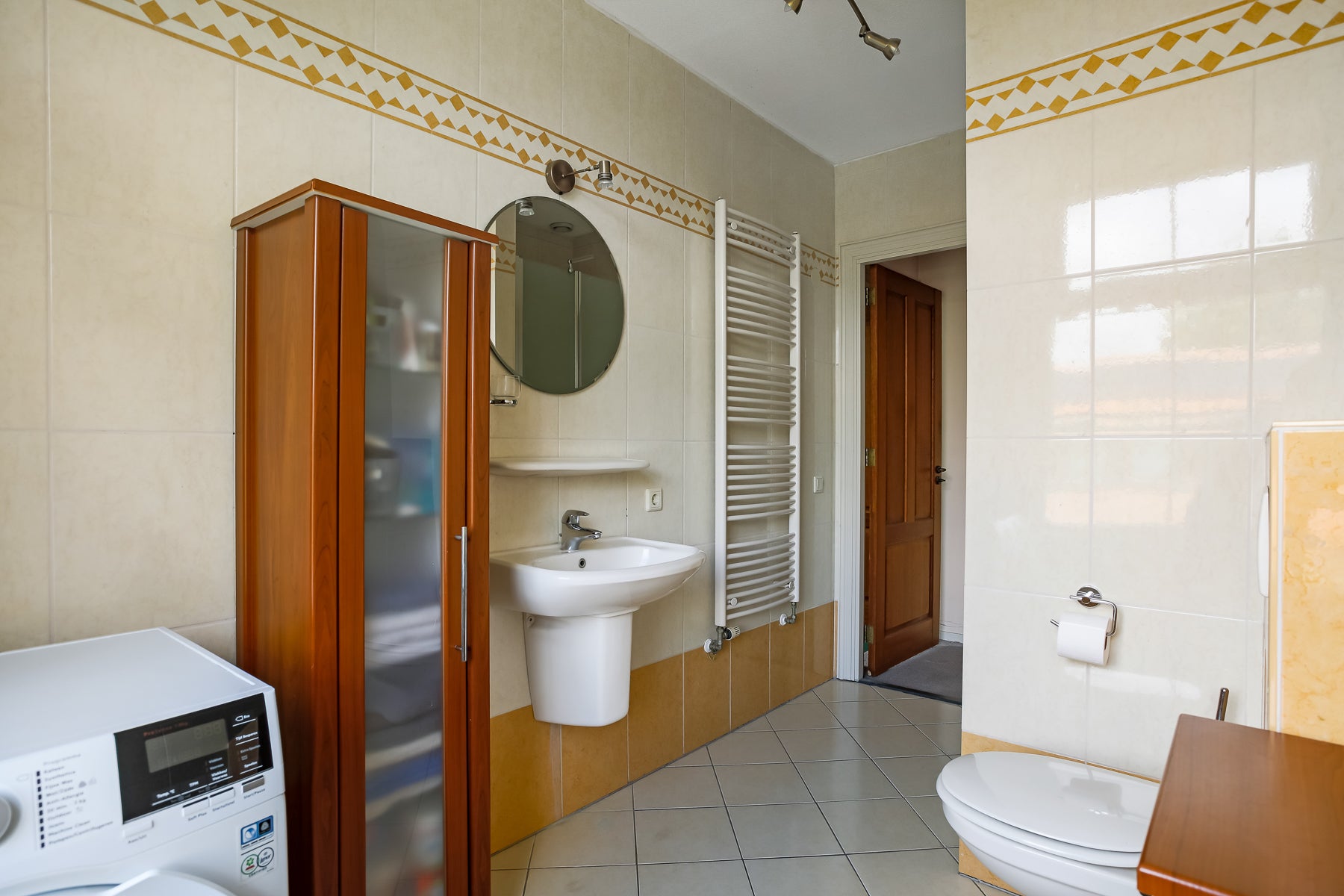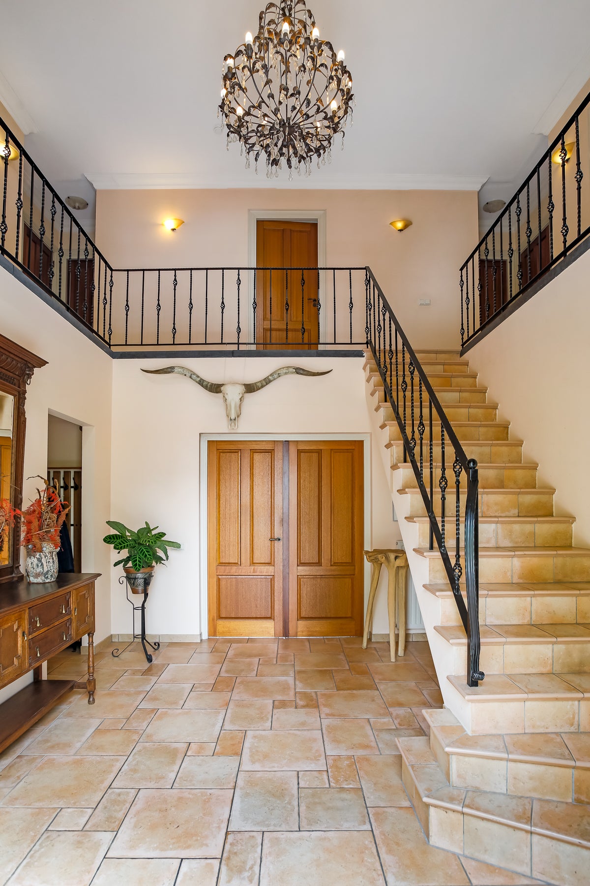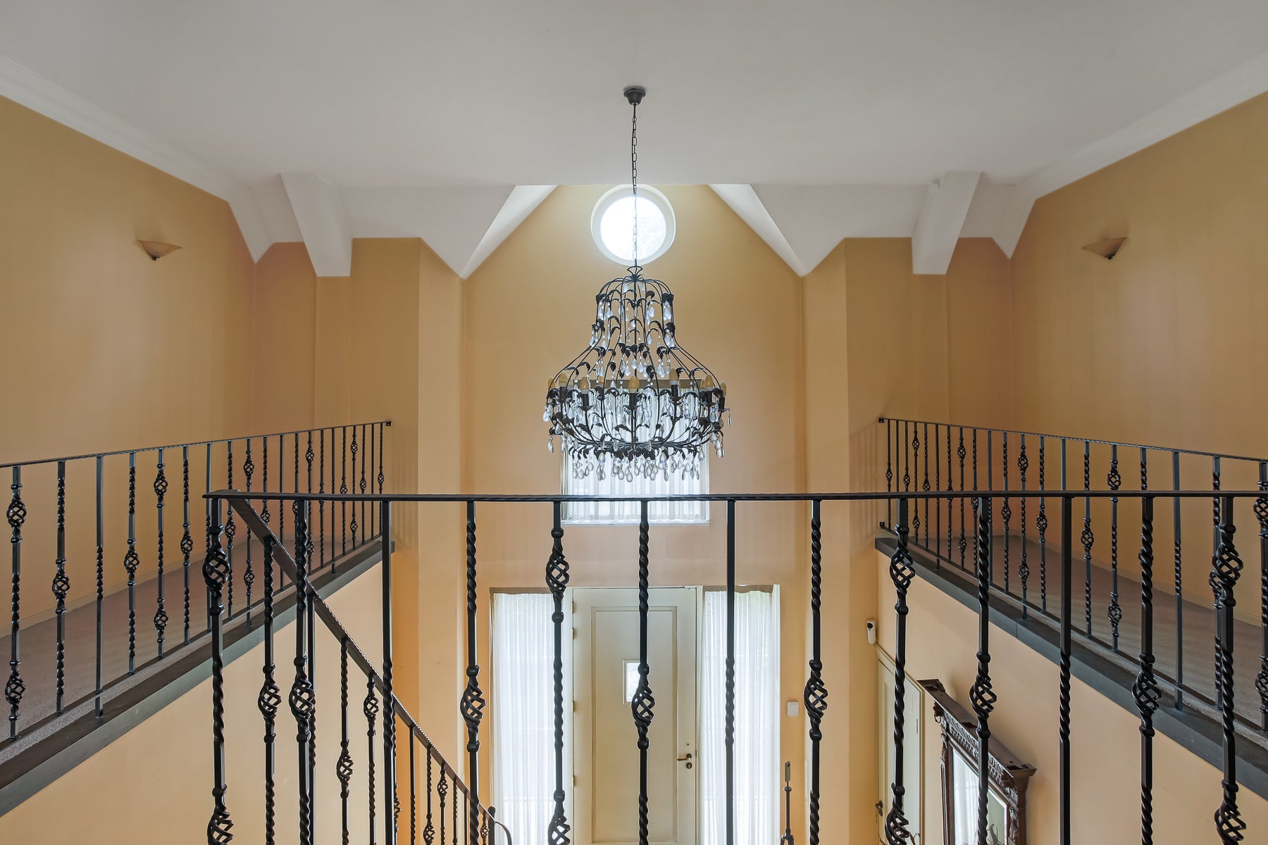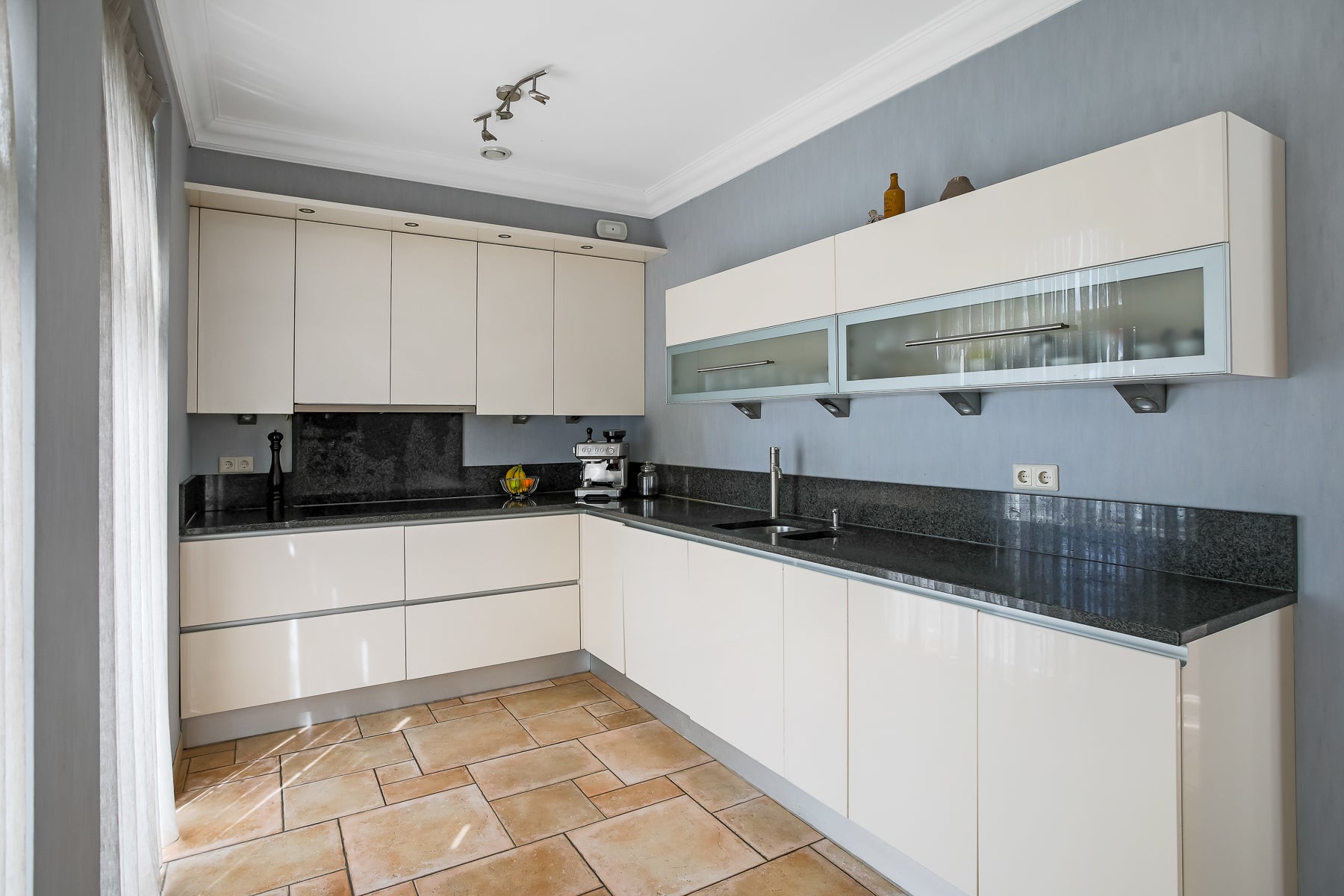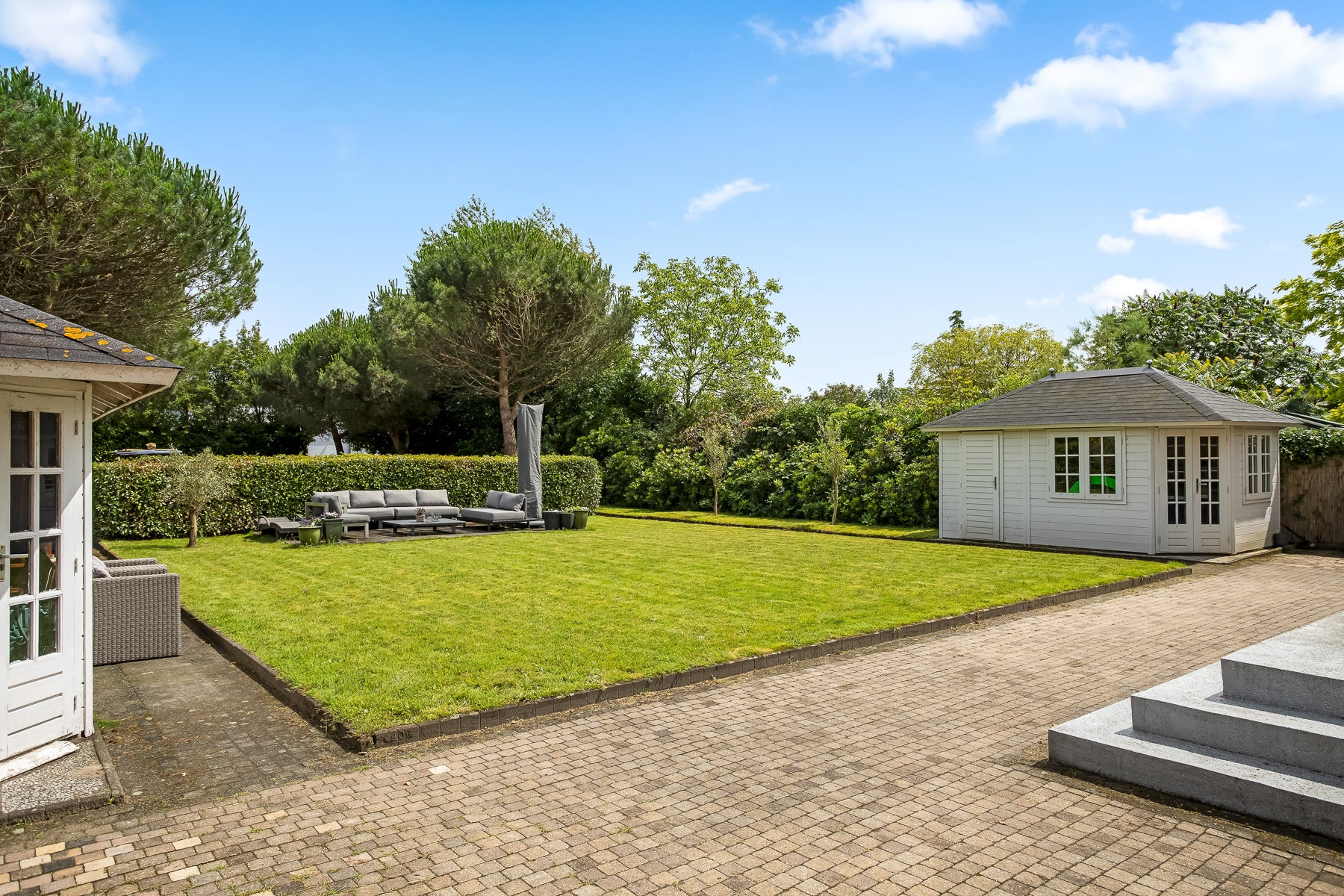 De imposante hal met vide leidt naar de lichte L-vormige woonkamer, waar openslaande deuren toegang geven tot de tuin. De halfopen keuken met Italiaans design sluit aan op het eetgedeelte, ideaal voor diners met familie en vrienden. Op de verdieping bevinden zich de master bedroom met balkon en vier andere ruime slaapkamers. Twee badkamers zijn beschikbaar, één met een ligbad en de ander met een douche. Buiten geniet je van een grote tuin met terrassen en privacy. Deze woning, gebouwd in 2002, is ideaal voor een groot gezin.