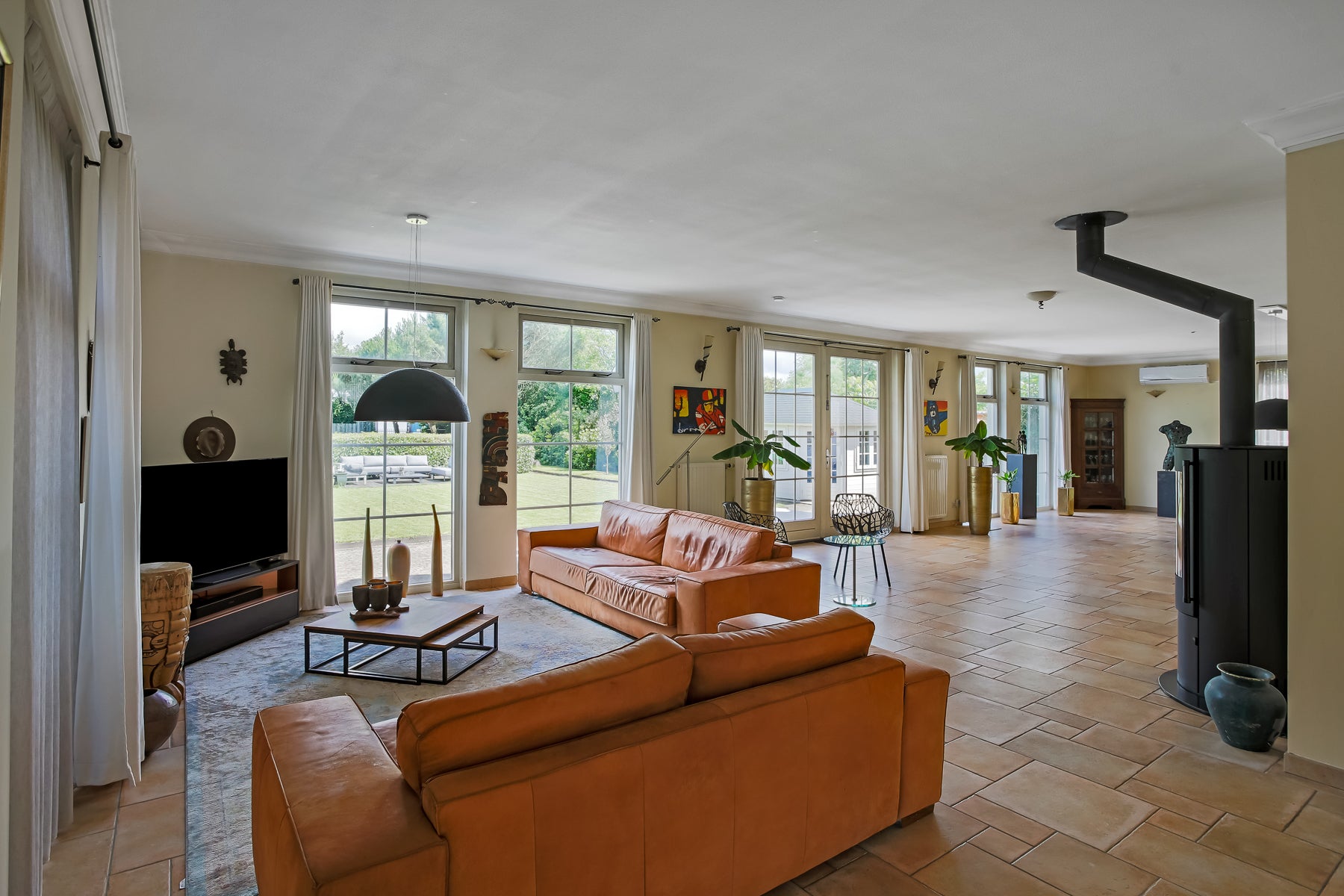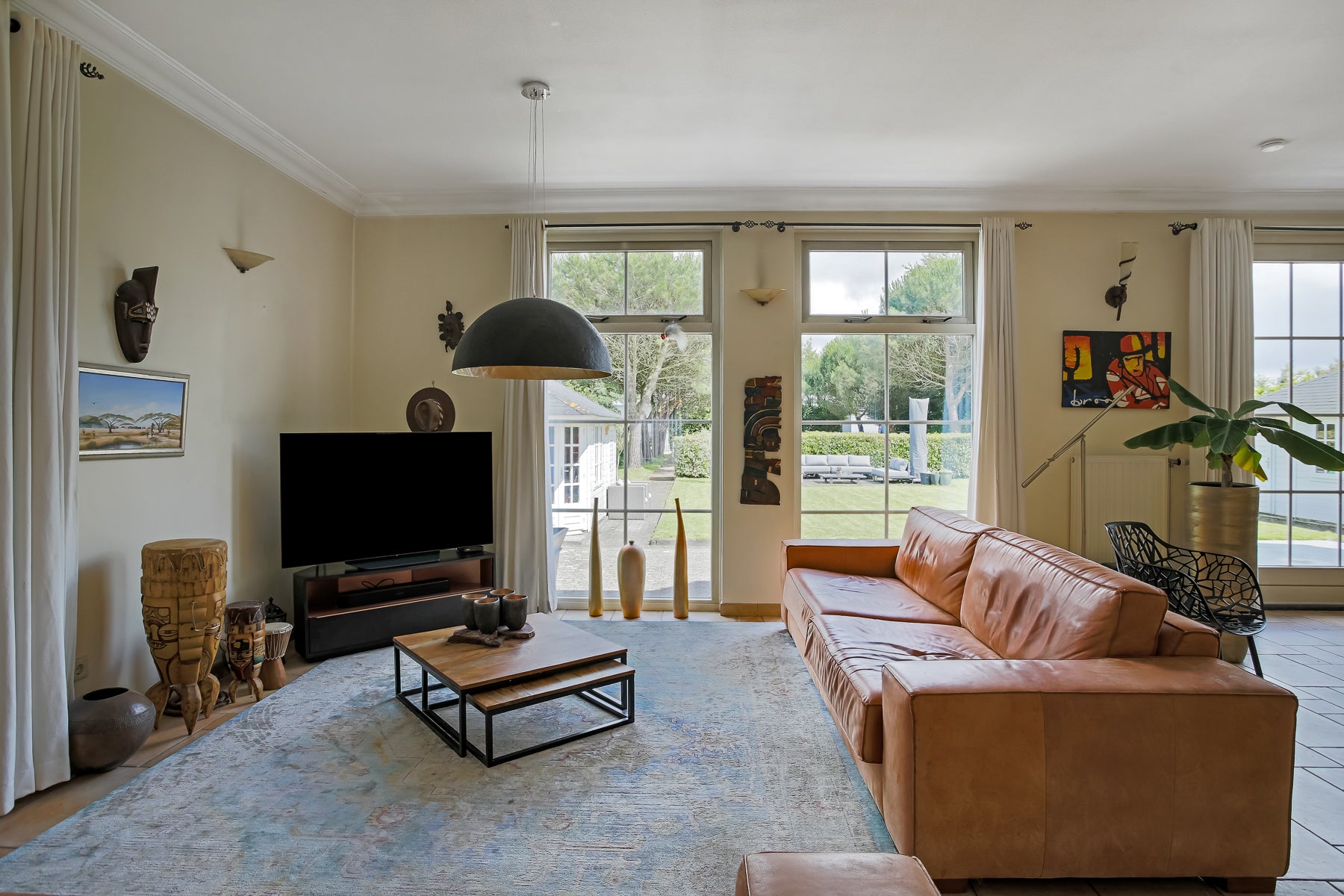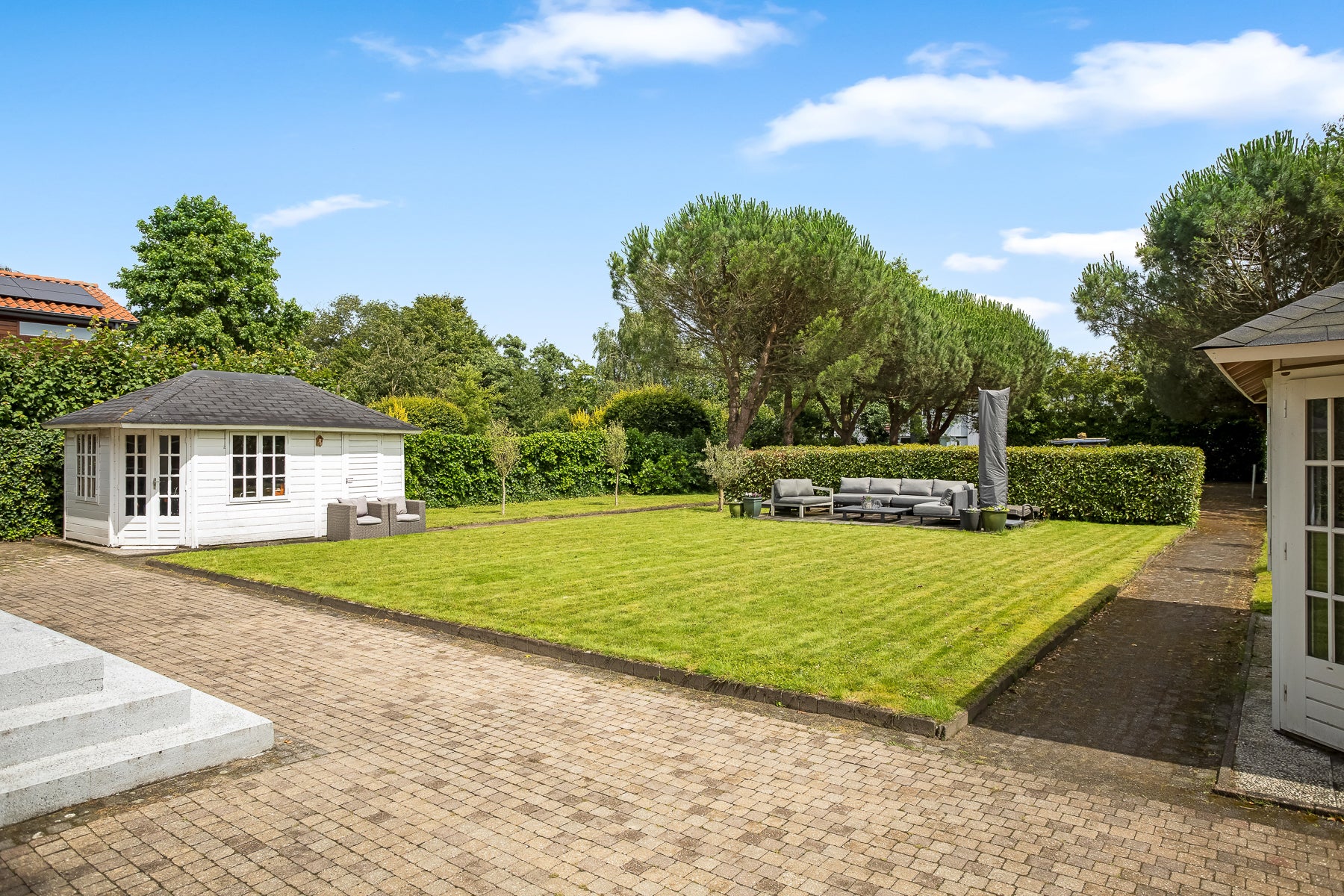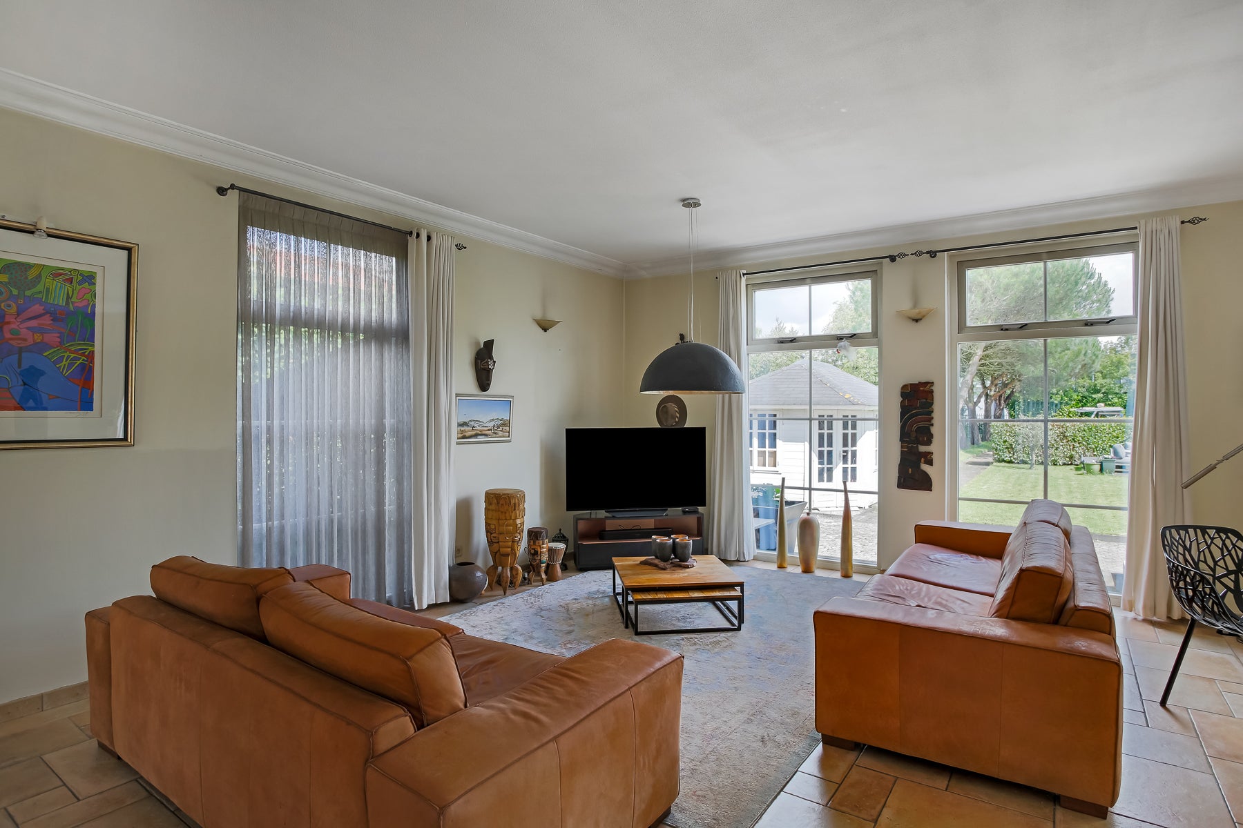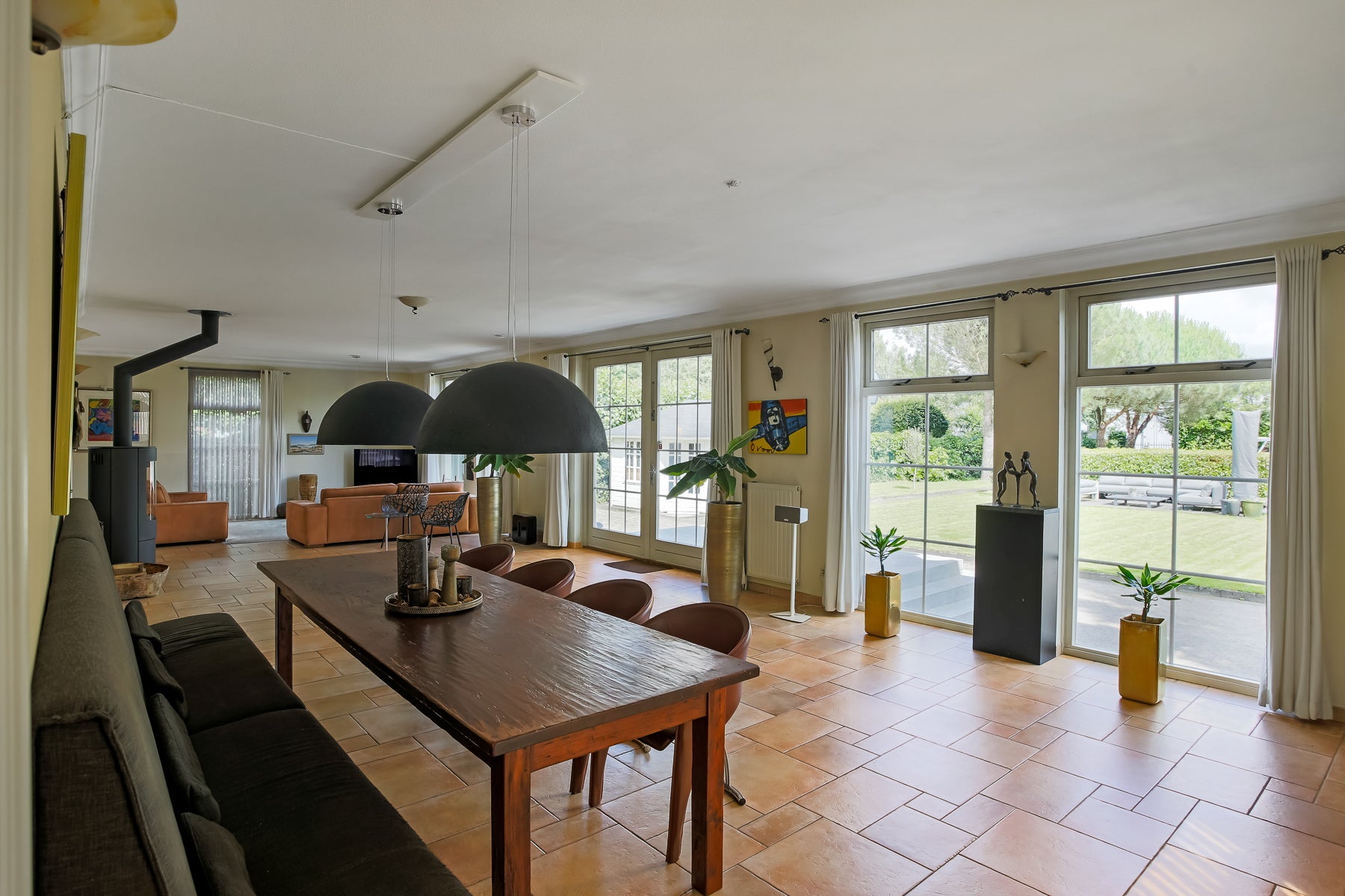 De imposante hal met vide leidt naar de lichte L-vormige woonkamer, waar openslaande deuren toegang geven tot de tuin. De halfopen keuken met Italiaans design sluit aan op het eetgedeelte, ideaal voor diners met familie en vrienden. Op de verdieping bevinden zich de master bedroom met balkon en vier andere ruime slaapkamers. Twee badkamers zijn beschikbaar, één met een ligbad en de ander met een douche. Buiten geniet je van een grote tuin met terrassen en privacy. Deze woning, gebouwd in 2002, is ideaal voor een groot gezin.