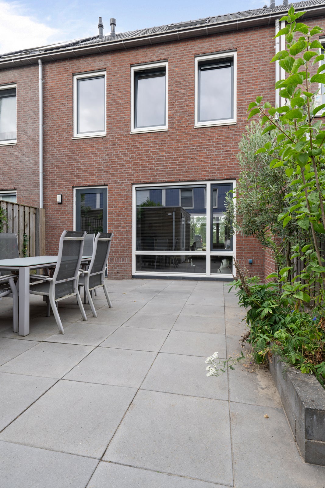 Wij bieden u deze mooie tussenwoning met vrijstaande berging aan, gelegen aan de rand van Oudenbosch, op een perceel van 94 m². Deze energiezuinige woning met energielabel A, gebouwd in 2017, is instapklaar en biedt luxe en comfort. Aan de voorzijde is er veel parkeergelegenheid. De woning beschikt over een ruime woonkamer met veel lichtinval en een luxe open keuken, uitgerust met moderne apparatuur. Op de eerste verdieping zijn er twee royale slaapkamers en een moderne badkamer met douche en toilet. De tweede verdieping kan worden ingericht als zolderkamer of derde slaapkamer. De achtertuin, op het oosten gelegen, is bereikbaar via een achterom en is voorzien van sierbestrating en borders met beplanting. Achterin staat een houten berging met elektra.