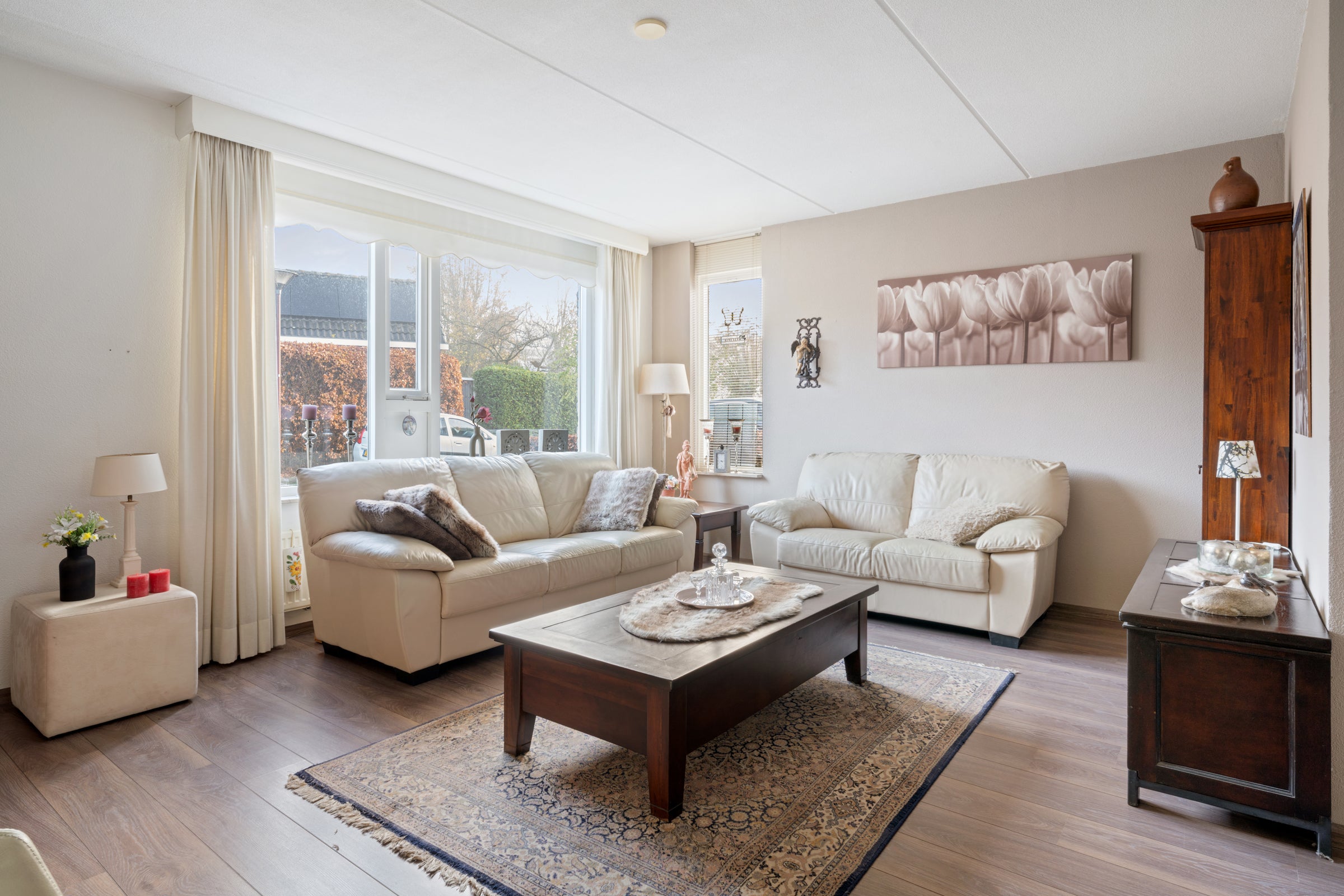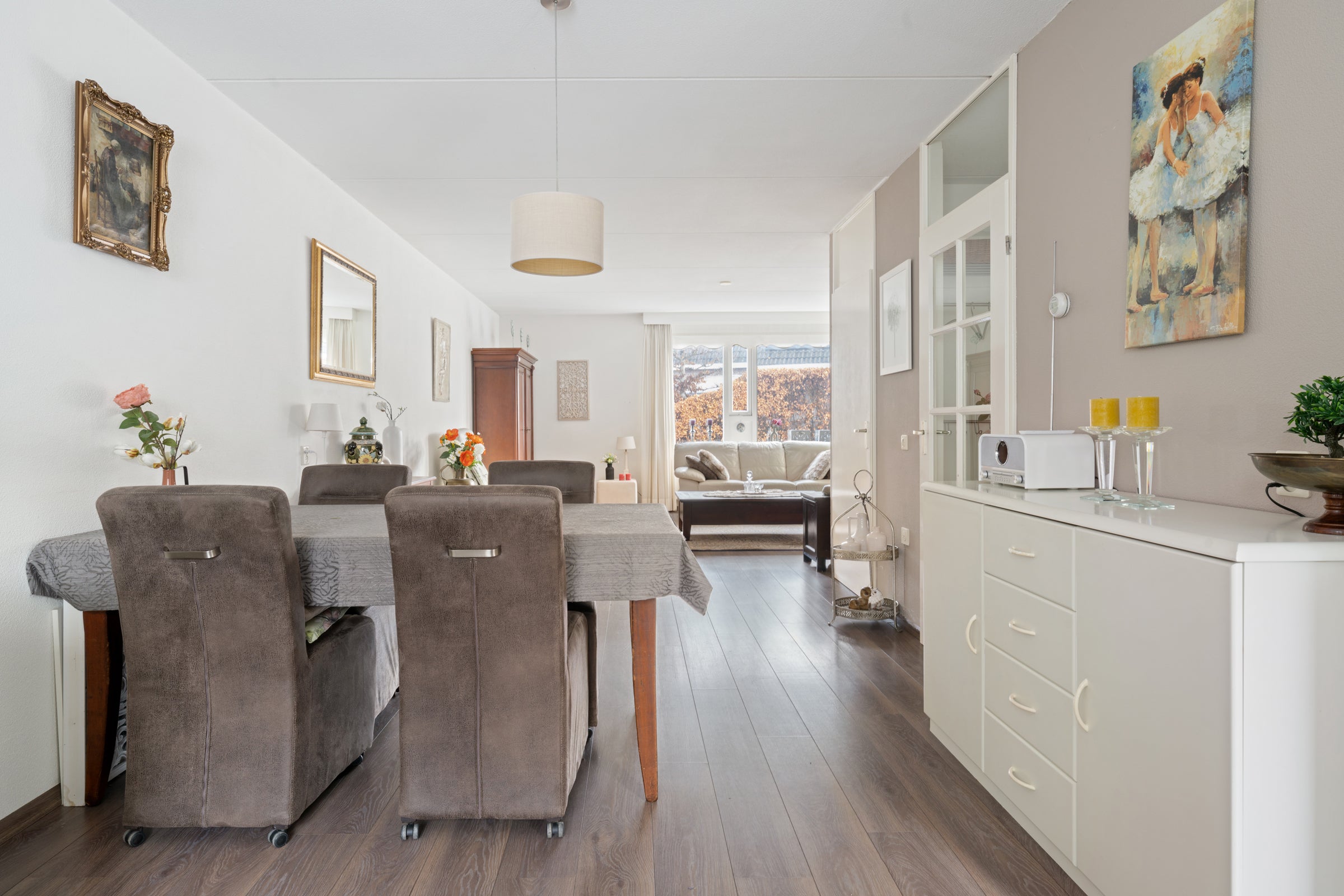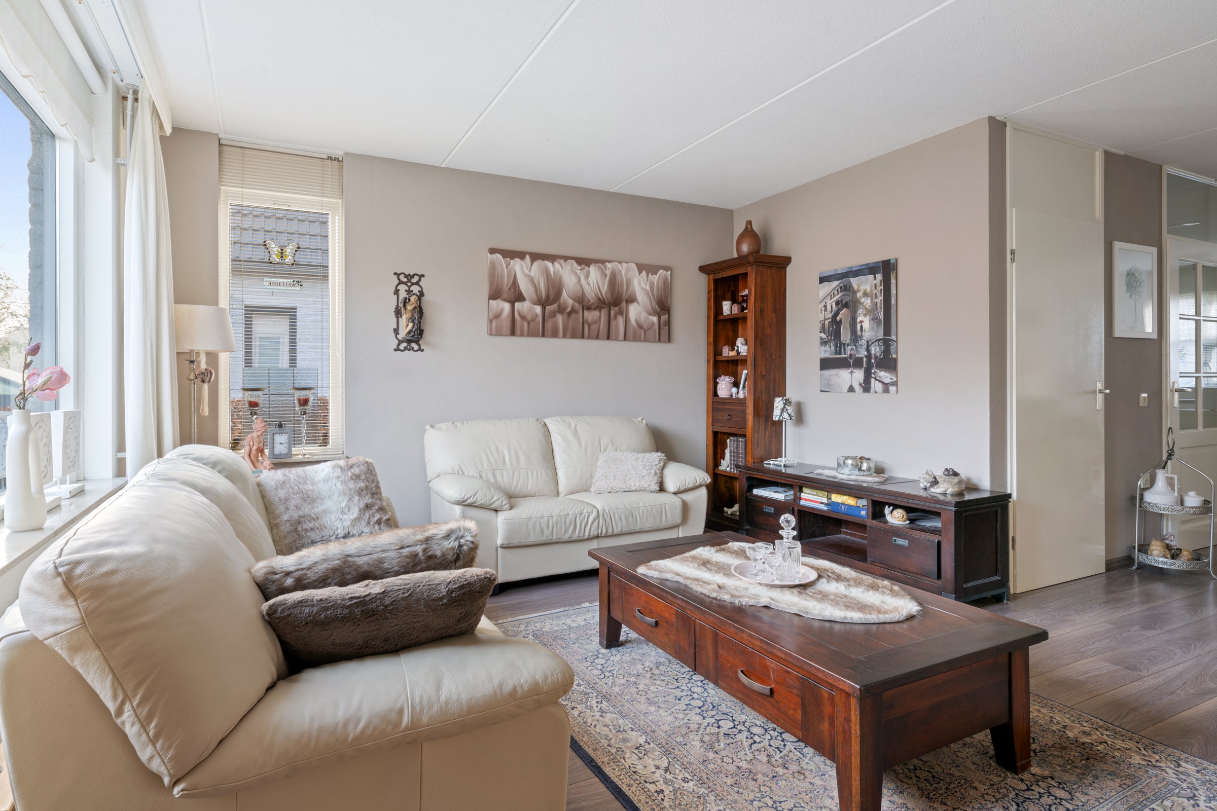 - De tussenwoning heeft een woonoppervlakte van 93 m² en beschikt over 3 kamers, waarvan 2 slaapkamers;