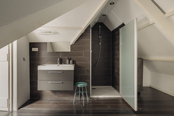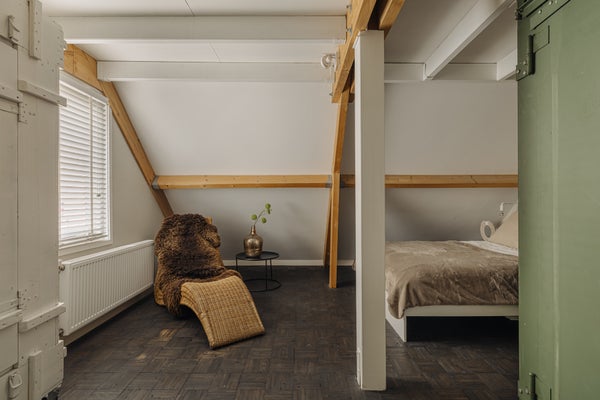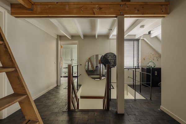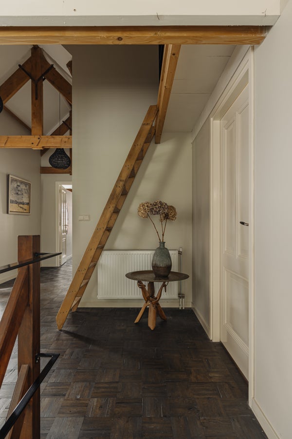 Op de bovenste verdieping, bereikbaar via een houten trap, vindt u een vliering en ruime zolder waar ook de cv-ketel is geplaatst. Ideaal voor de opslag van uw spullen.