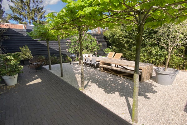 De ruime en mooi aangelegde tuin ligt aan de achterzijde over de gehele breedte van de woning. In het voorjaar en zomer heeft u de hele dag zon in de tuin. Er is een buitenruimte/schuur met overkapping voor fietsen en elektriciteit om o.a. fietsen op te laden.