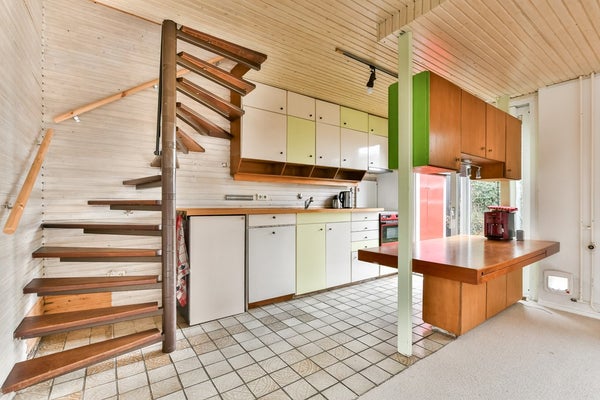 The spiral staircase leads to the landing. At the front is the bathroom with toilet, washbasin and shower. There is the possibility to enlarge the bathroom and modernise it to your own liking. On the street side is a spacious bedroom with built-in wardrobe. At the rear is the master bedroom with practical built-in wardrobe wall. There is also an extra room with built-in wardrobe, ideal as a children's room or study.