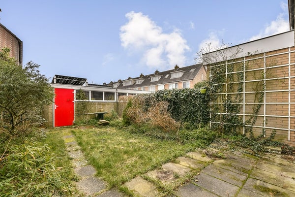 De woning beschikt over een voortuin en een zonnige achtertuin op het zuid/oosten, een stenen schuur en een achterom. Schuin aan de overzijde is tevens een garagebox (16 m²) te koop voor € 45.000,- k.k.